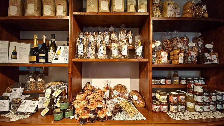 La bottega de “Ij canestrei ‘d Flaminia” a Condove è attigua al laboratorio di produzione. Sugli scaffali si possono trovare prodotti che racchiudono i gusti genuini e i profumi delle “cose buone di una volta”. Fra i migliori prodotti del Piemonte e della Valsusa troviamo marroni sciroppati e glacé, crema di marroni, vini locali di antichi vitigni, miele di montagna, marmellate da agricoltura biologica, liquori, tisane e essenze alpine, cioccolato artigianale, zabaione, idromele, creme alla nocciola, genepy, farine di antichi mais e molto altro. Tutte delizie che si aggiungono ai famosi canestrelli, agli altri biscotti, alle torte e alle crostate del noto biscottificio condovese.