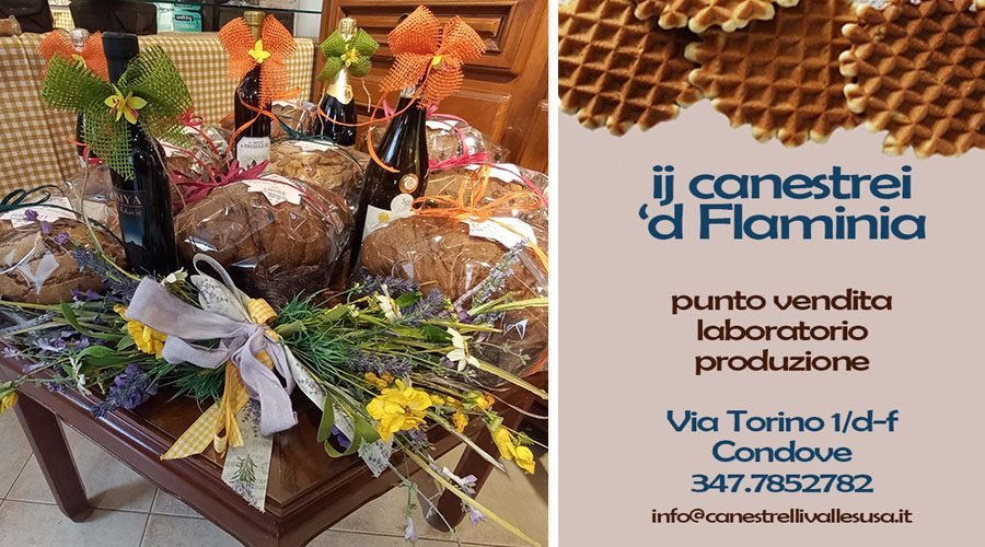 CONDOVE – Se desideri festeggiare Pasqua in famiglia o con gli amici, i prodotti tipici e le bontà artigianali del biscottificio “Ij Canestrei ‘d Flaminia” di Condove non possono proprio mancare in tavola. Nella bottega annessa al laboratorio di produzione sono arrivate le colombe di Giacomo Bianciotto e le bontà di cioccolato di Luca Ballesio. Si uniscono ai tanti prodotti che Katya e Paolo in questi anni hanno accuratamente selezionato da produttori locali e del Piemonte e che si aggiungono a quelli che escono dal loro laboratorio. Se poi desideri fare un regalo è possibile scegliere ciò che andrà a comporre eleganti e sicuramente graditi cesti. Fai un salto nella bottega de “Ij Canestrei ‘d Flaminia” di Condove, l’ingresso e libero! Sarai accolto da un buonissimo profumo di bontà appena sfornate.