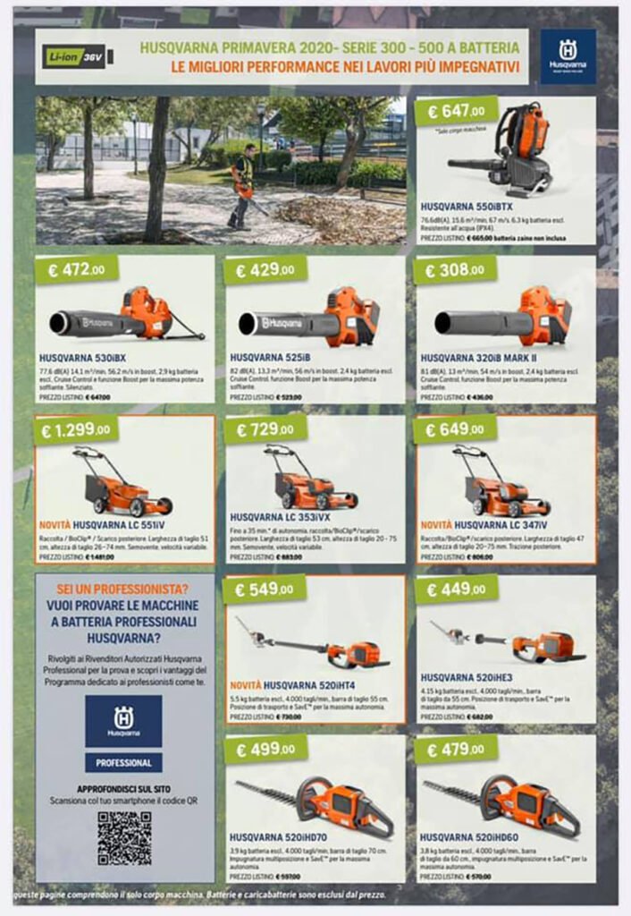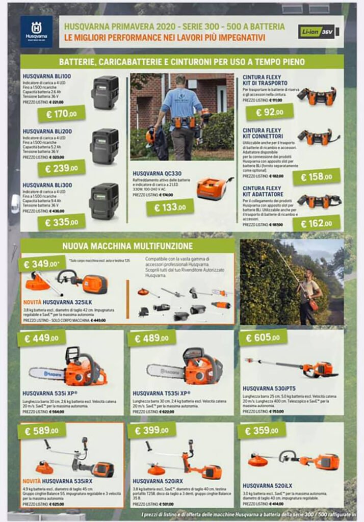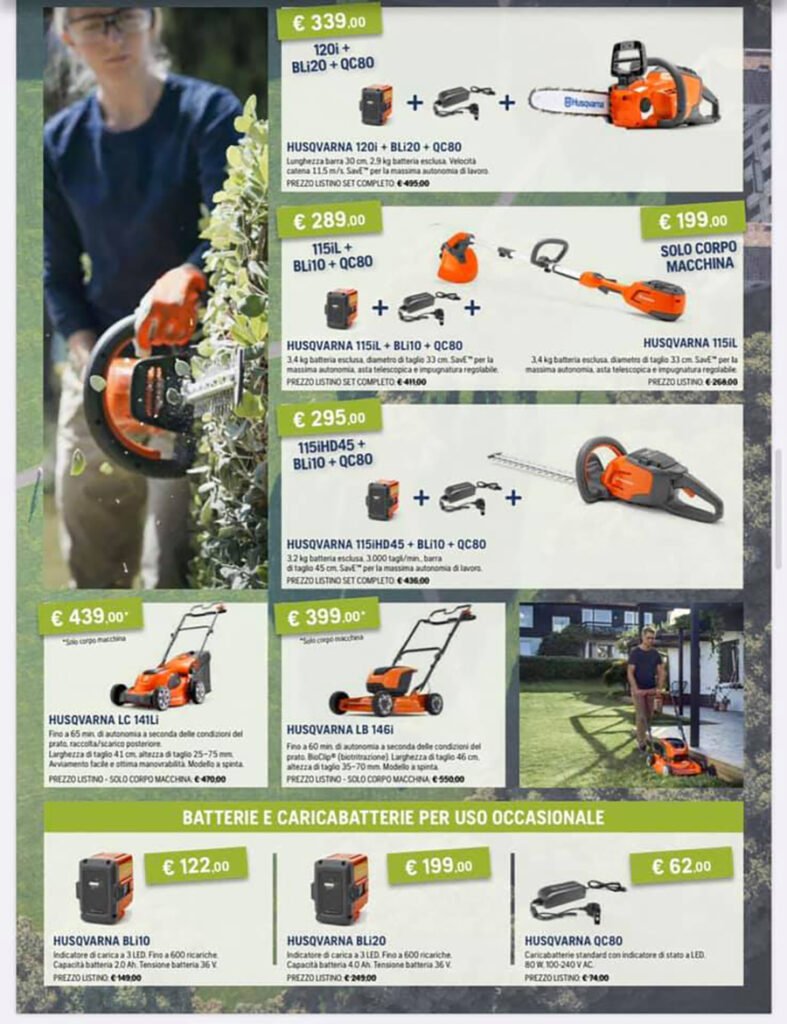 Alla Va.Ma. di Bussoleno sono tantissime le promozioni estive di Husqvarna. Un marchio che offre una gamma completa di prodotti per bosco e giardino capaci di coniugare tecnologia e innovazione. Soffiatori, tagliasiepi, decespugliatori, tagliaerba a spinta o semoventi, trattorini, tagliatutto, motozappe, motocoltivatori, falciatrici, trinciasarmenti, motocarriole, motoseghe e potatori, idropulitrici. Anche nella gamma a batteria. Il catalogo 2020 di Husqvarna è ricco di offerte estese fino al 31 agosto.