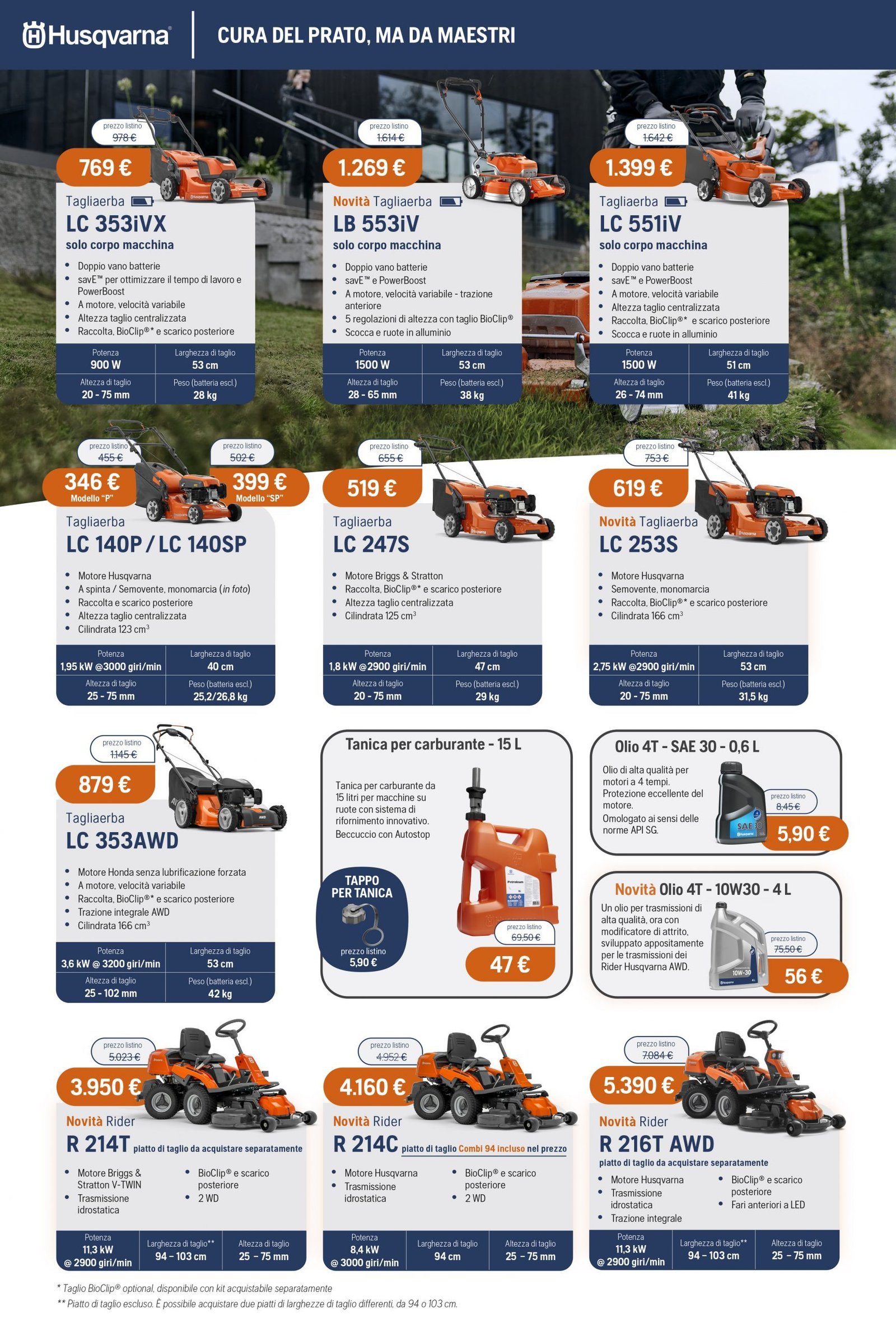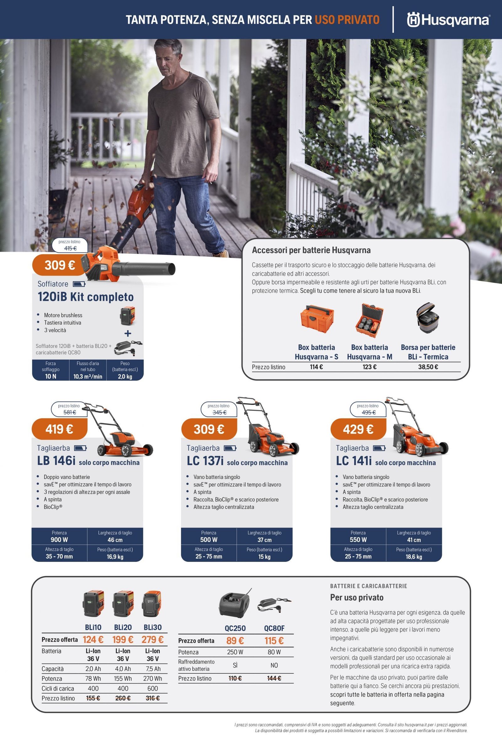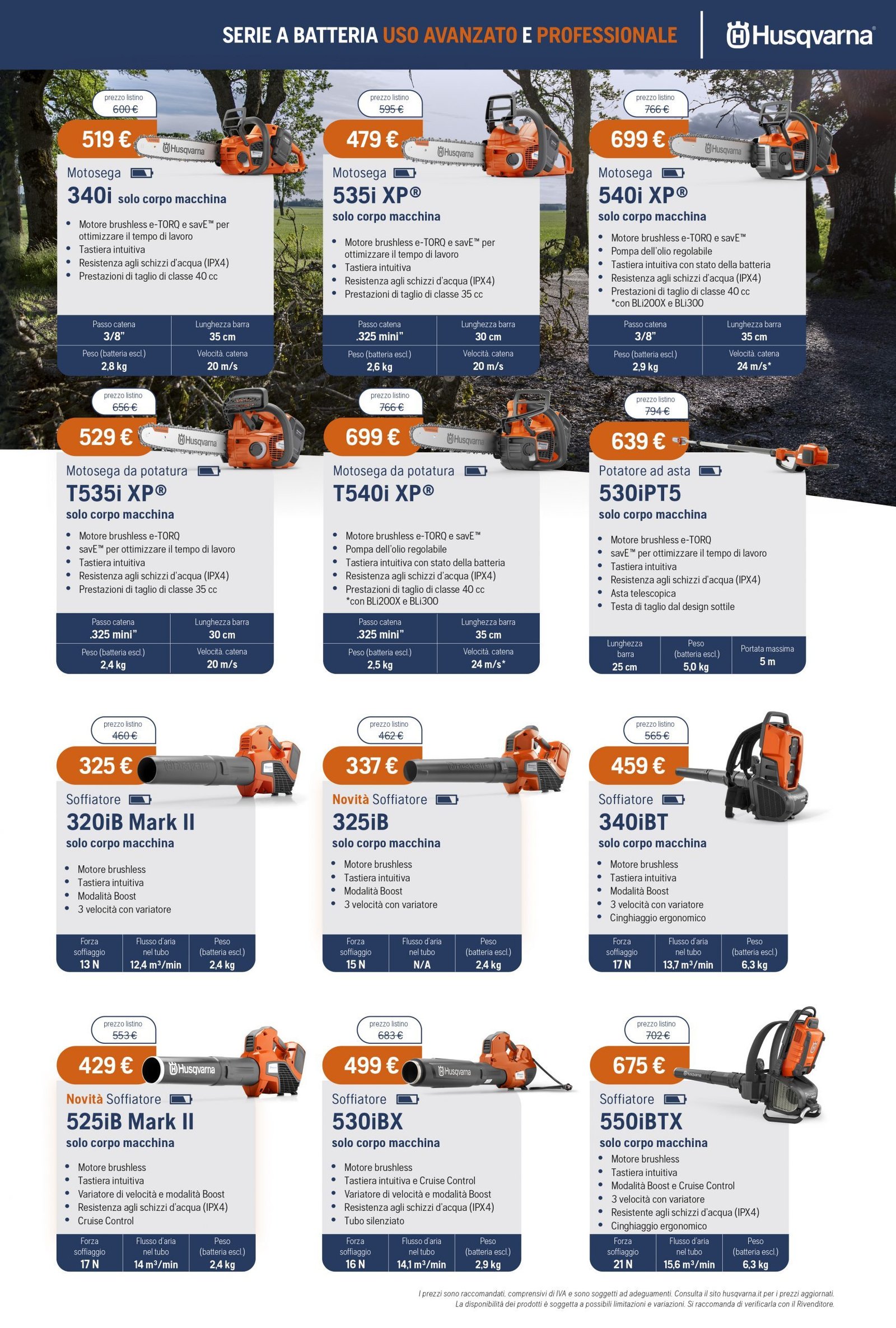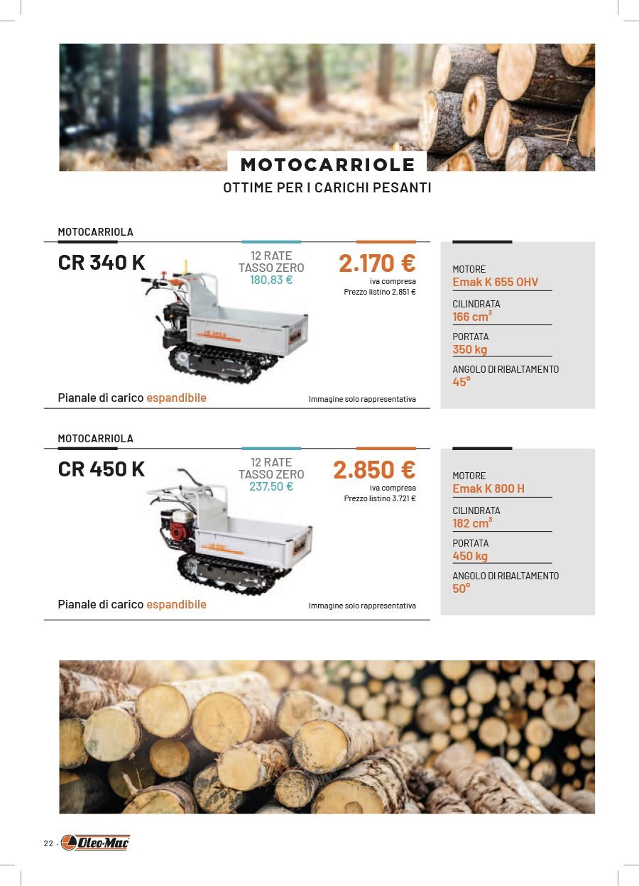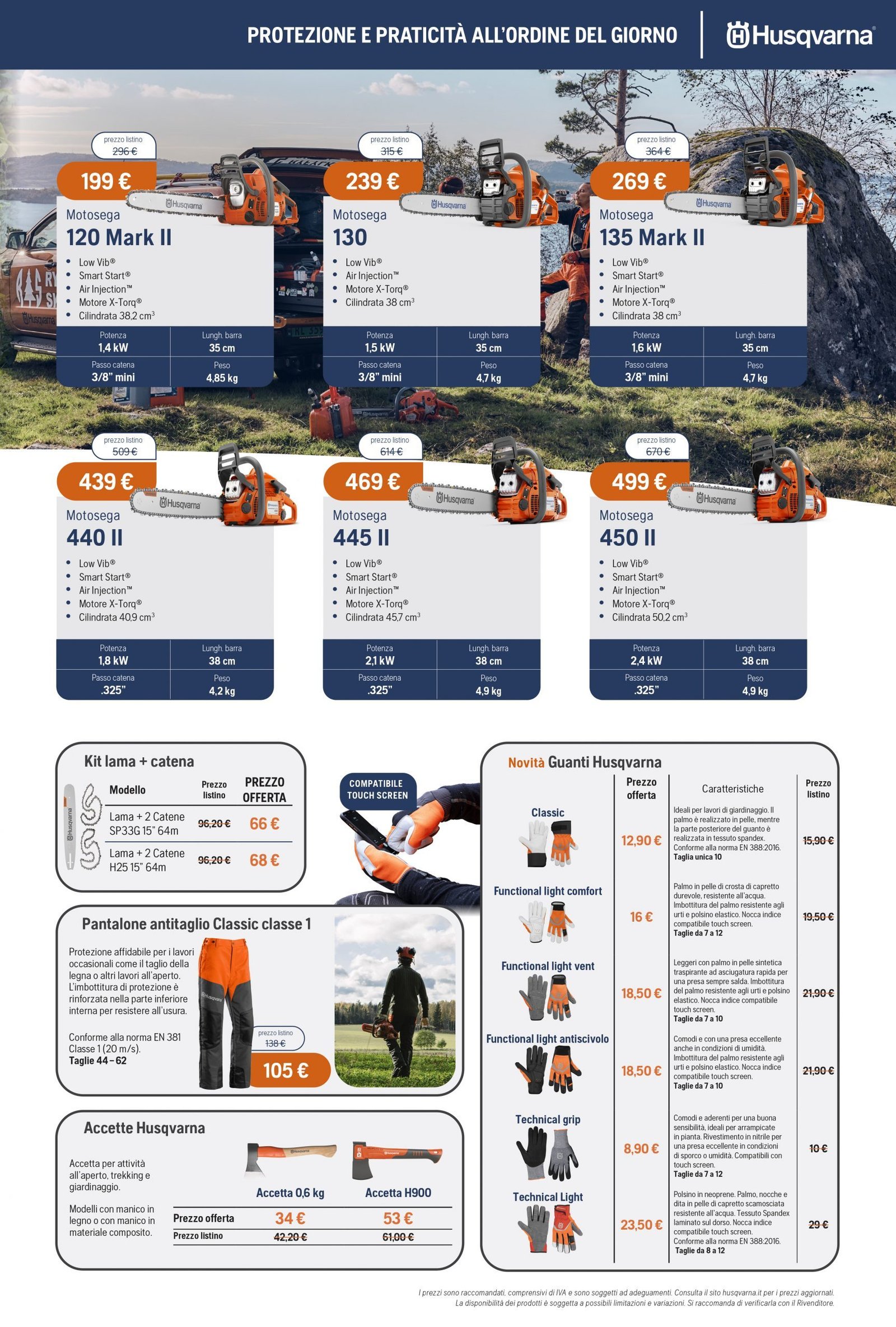 La Va.Ma. di Bussoleno ha unāampia scelta di macchine per soddisfare ogni esigenza. Tratta i prodottiĀ Oleo-Mac (il volantino al link) e Husqvarna (il volantino al link), aziende che rappresentano un punto di riferimento per professionisti e hobbysti nella manutenzione del verde. Inoltre ha scelto per la sua clientela la qualitĆ e lāaffidabilitĆ delĀ marchio italiano Nibbi. LaĀ Va.Ma.Ā si tiene costantemente aggiornata sulle ultime promozioni delle case trattate,Ā per proporre alla sua affezionata clientela le migliori offerte sul mercato. Sui volantini promozionali ĆØ possibile scegliere fra prodotti a batteria e non, tagliaerba a spinta e semoventi, soffiatori, tagliasiepi, motoseghe, potatori, decespugliatori e accessori collegati, trattorini, trinciaerba e trinciatutto, motozappe, motocarriole, idropulitrici, motopompe, abbigliamento da lavoro e molte altre attrezzature.