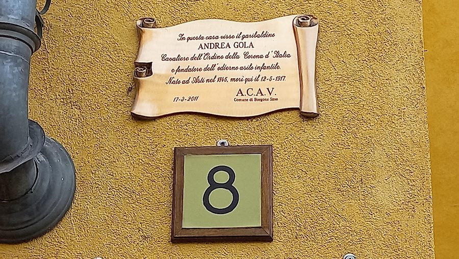 L’Asilo Infantile Coniugi Gola si trova nel centro di Borgone Susa in una casa indipendente con un ampio giardino dove i bambini possono giocare. Ha una posizione strategica per passeggiate nella natura, alla scoperta del paese e per incontri in biblioteca. La scuola è aperta dalle ore 7,45 alle 18. Offre ai bambini la merenda mattutina e pomeridiana, ma soprattutto ha la mensa interna con una cuoca che prepara quotidianamente pasti con prodotti freschi. L’asilo è associato FISM, Federazione Italiana Scuole Materne. Ha sede in quella che fu la casa del garibaldino Andrea Gola, Cavaliere dell’Ordine della Corona d’Italia e fondatore dell’odierno asilo. È dunque una scuola dell’infanzia dalla lunga storia, ma che ha saputo negli anni crescere, adeguarsi alle nuove esigenze educative e didattiche dei bambini e proporre sempre nuove offerte formative. Accoglie alunni dai tre ai cinque anni, tra cui gli anticipatari nati entro il mese di aprile. Oggi può contare su due maestre giovani e preparate che seguono in modo attento i bambini.