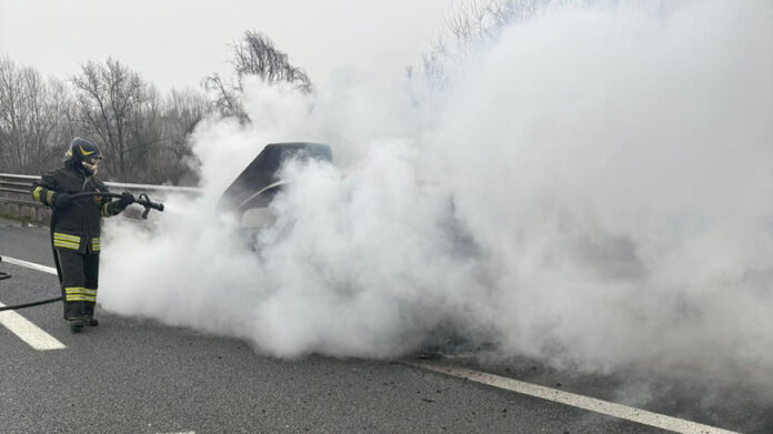 Auto in fiamme: nessun ferito nell’incendio in direzione nord; traffico in gestione