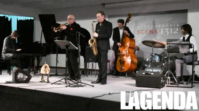 BARDONECCHIA – Il Quintetto West Coast venerdƬ 7 gennaio, nellāambito di Scena 1312, festival culturale musicale e teatrale a cura di Estemporanea con il patrocinio della Civica Amministrazione di Bardonecchia, ha proposto sul palco della Sala Giolitti del Palazzo delle Feste uno spettacolo musicale a tutto jazz. Il gruppo strumentale composto da Valerio Signetto, al sassofono, Felice Reggio alla tromba e al flicorno, Fabio Gorlier al pianoforte, Marco Breglia, alle percussioni ed Enrico Ciampini, al contrabbasso, ha suonato musica jazz, West Coast, stile sviluppato dal 1949 al 1964 a Los Angeles, a San Francisco e lungo la costa occidentale statunitense.