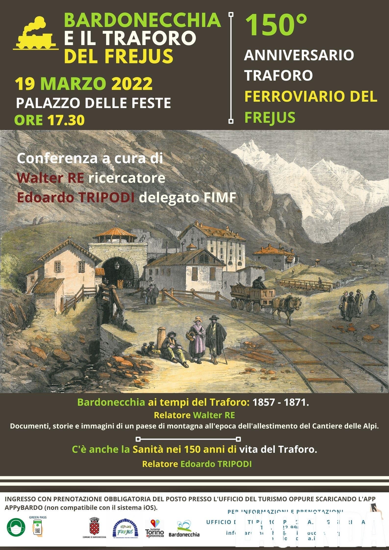 BARDONECCHIA – Il quarto appuntamento dei festeggiamenti organizzati dal Comune di Bardonecchia per celebrare i 150 anni dellāapertura al traffico del Traforo ferroviario del Frejus, avvenuta il 17 settembre del 1871, originariamente previsto per sabato 22 gennaio, si svolgerĆ sabato 19 marzo 2022 alle ore 17.30 al Palazzo delle Feste di piazza Valle Stretta. Relatori della conferenza due grandi conoscitori della storia locale: Walter Re, ricercatore giĆ moderatore della conferenza iniziale del 17 settembre 2021, che parlerĆ di āBardonecchia ai tempi del Traforo: 1857 ā 1871ā ed Edoardo Tripodi, medico, delegato della Federazione Italiana Modellismo Ferroviario, studioso e scrittore di libri sul trasporto ferroviario, che relazionerĆ su āCāĆØ anche la SanitĆ nei 150 anni di vita del Traforoā. Aspetti specifici legati allā opera altamente innovativa che ha radicalmente modificato in positivo la storia dei trasporti transfrontalieri, migliorando non solo la vita degli abitanti di Bardonecchia, argomenti in parte trattati il 17-18 e 19 settembre nel corso dellāinaugurazione dei festeggiamenti che, dopo una serie di conferenze a cadenza mensile termineranno nel prossimo agosto.