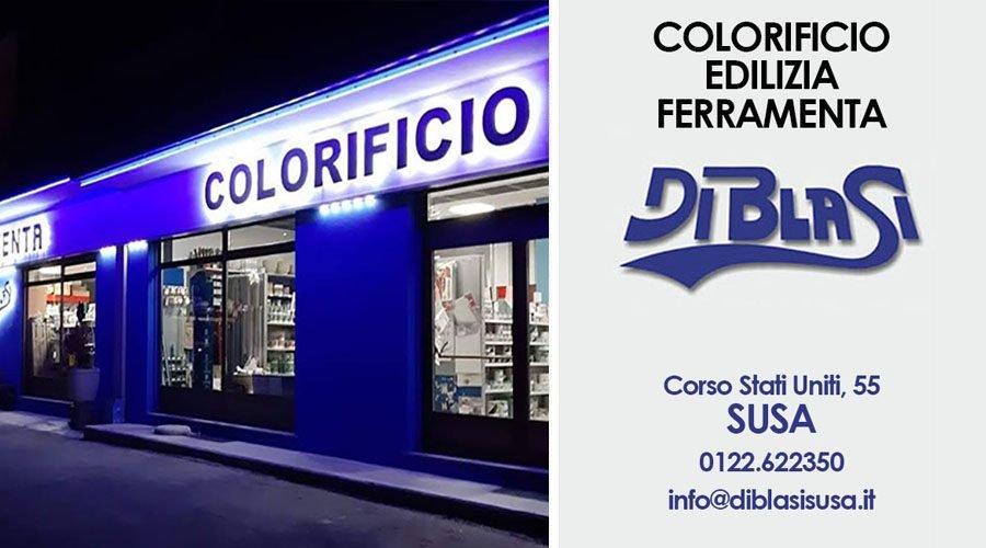 Di Blasi a Susa è un colorificio molto ben fornito e attrezzato. Dispone infatti dei migliori sistemi tintometrici e spettrofotometro. È possibile trovare un ampio assortimento di colori, vernici e una vasta gamma di materiali e accessori. Tra i principali articoli trattati si possono trovare attrezzi per decorazioni, bastoni per tende in legno, bastoni in ferro battuto, bordi autoadesivi, carta da parati, decorativi, linea industriale, linoleum, pennelli, pittura ai silossani, pitture elastometriche, pitture ai silicati, pitture antimuffa, pitture per esterni, pitture per interni, raschietti, resine per pavimenti, rulli, smalti a solvente, smalti all’acqua, stucchi fibrati, vernici per legno.