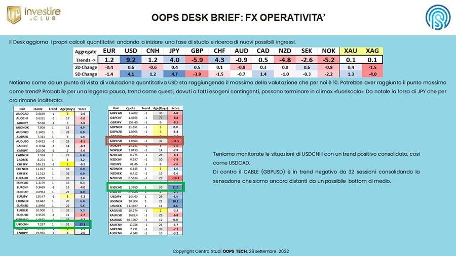 Per la giornata odierna, Giovedì 29 Settembre 2022, ci aspettiamo una sessione volatile positiva. I Mercati nella sessione europea potrebbero muoversi in un trading range volatile, con una maggior probabilità di range positivo. Nella sessione asiatica registriamo i benchmark azionari in rialzo, rimbalzo dei Treasury come del Dollaro, sceso il petrolio così come l’oro. I mercati azionari europei potrebbero muoversi in un range volatile positivo, estendendo i guadagni della sessione asiatica e proseguendo il piccolo rally di wall street. Gli indici azionari americani nella sessione di ieri hanno recuperato terreno dopo che la Banca d’Inghilterra ha dichiarato che avrebbe iniziato ad acquistare titoli di Stato del Regno Unito nel tentativo di stabilizzare il mercato. Nel frattempo ci si mette di mezzo pure il maltempo, l’uragano IAN arrivato nelle ore scorse in Florida potrebbe dare un’altra spinta inflazionistica a seguito degli ingenti danni che sta facendo sulla costa EST degli Stati Uniti. Lo scenario economico è particolarmente vulnerabile agli shock ed alle esogenie. Arriviamo da due settimane molto difficili per i mercati e sembra che ieri sia tornata un minimo di fiducia, vedremo nel corso delle prossime sessioni se questa speranza, come sembra, sia mal riposta (Centro Studi OOPS Tech).