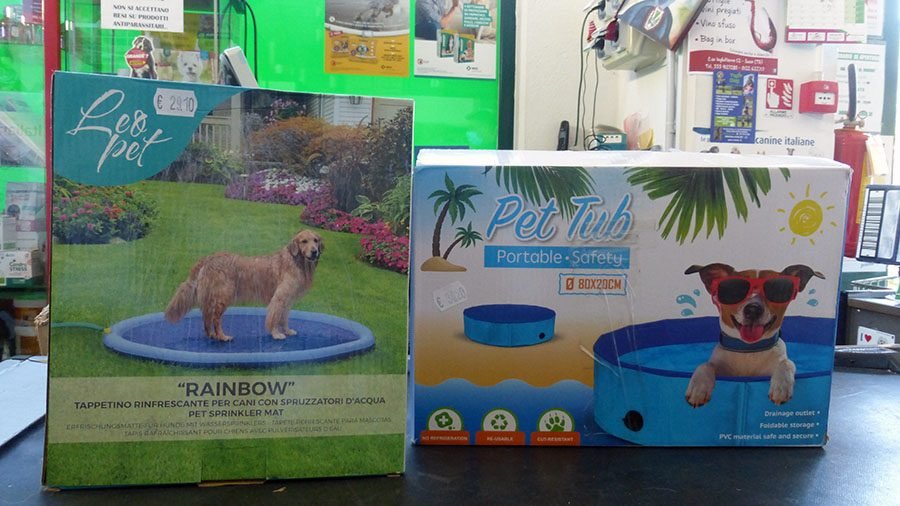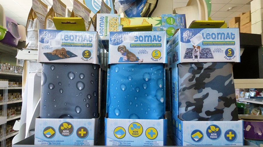 Per contrastare il caldo estivo da Pet Store Valley è possibile trovare i tappetini autorinfrescanti per cani Leomat. Assorbono il calore del corpo e lo dissipano nell’aria attraverso l’evaporazione delle aree non in uso del tappeto stesso. Si raffreddano ulteriormente con la pressione dell’animale una volta che vi si posa sopra. Per questo motivo, raffreddano gradualmente la temperatura corporea. Prodotti in materiale resistente, i tappetini contengono un gel di raffreddamento non tossico e che non richiede acqua, né congelamento o corrente elettrica. Oppure il tappetino rinfrescante “Rainbow” per cani con spruzzatori d’acqua dell’azienda Leopet. Infine le piscinette dove il cane può comodamente guazzare e rinfrescarsi.