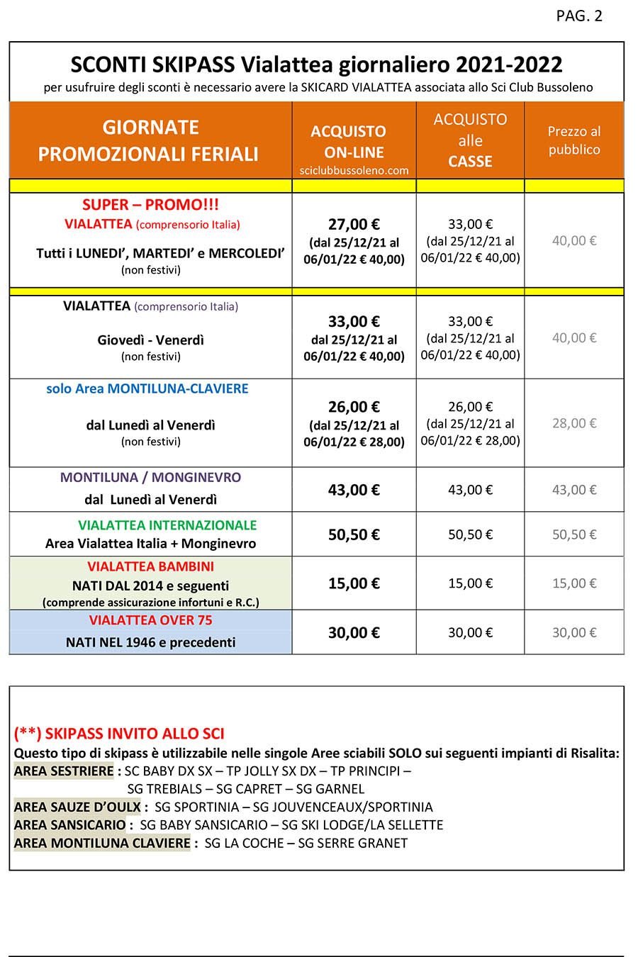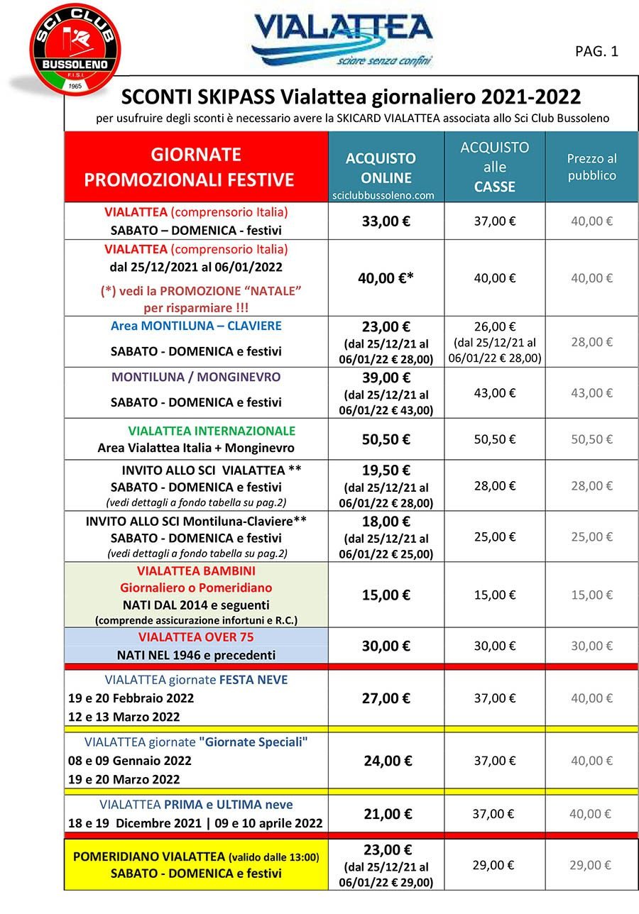 SCONTI SKIPASS VIALATTEA 2021-2022