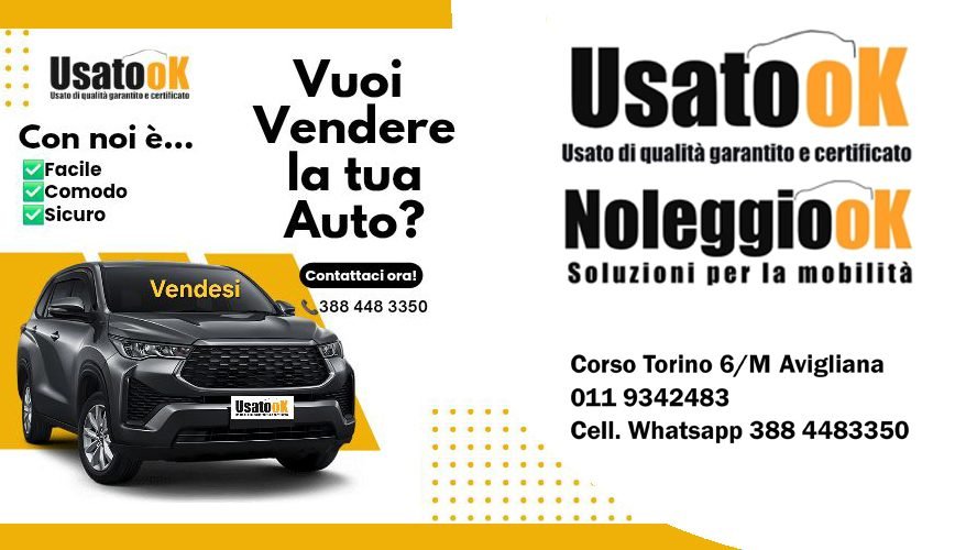 UsatooK ĆØ in grado di consigliare il cliente nellāacquisto o nel noleggio dellāauto per il tempo libero o per il lavoro. Si occupa di vendita di autoveicoli aziendali, nuovi, km zero e usato certificato e garantito di tutti i marchi automobilistici a Torino e provincia. Da UsatooK ĆØ inoltre possibile trovare unāampia gamma di servizi per seguire lāautomobilista durante tutto il percorso di vita dellāauto.Ā Ad Avigliana UsatooK ĆØ anche NoleggiooK per offrire soluzioni per la mobilitĆ con il noleggio a breve e a lungo termine. Ć partner delle migliori societĆ leader nel settore. Vuoi un preventivo telefonico e senza impegno? Chiama il numero telefonico 011 9342483 per ricevere informazioni veloci e in tempo reale. Richiedi un preventivo personalizzato, compilando il FORM senza impegno e indica le tue esigenze e preferenze.