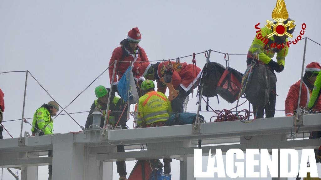 Ci son voluti 4800 metri di fune per fare arrivare fino a terra i 12 speciali Babbi Natale che si sono calati dalla cima del grattacielo della Regione Piemonte. Lāiniziativa ĆØ stata resa possibile grazie alla straordinaria collaborazione del Comando Provinciale di Torino dei Vigili del Fuoco, del Corpo Nazionale del Soccorso Alpino e Speleologico Piemontese, della Brigata Alpina Taurinense, del Coordinamento Regionale del Volontariato di Protezione Civile e dellāAssociazione Nazionale Carabinieri.