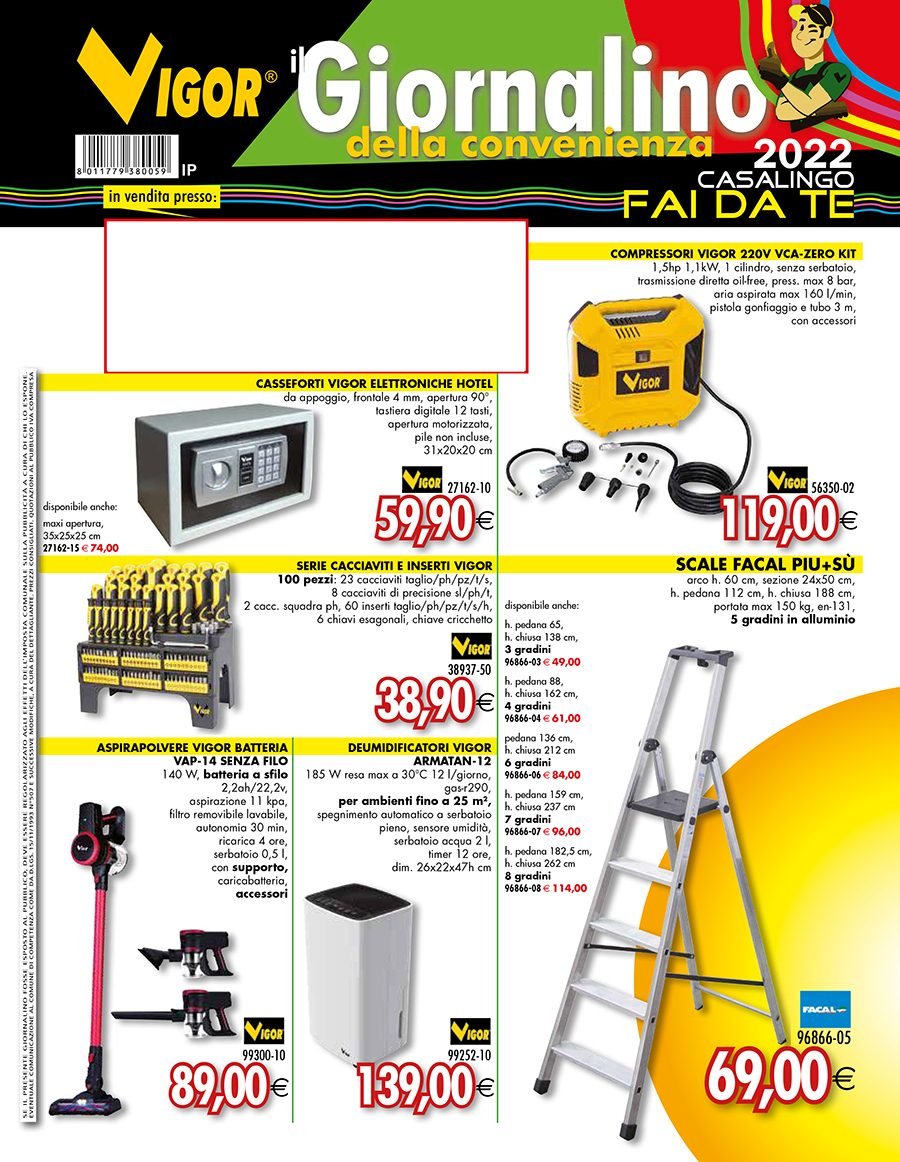 BUSSOLENO āĀ In questi giorni Edil BussolenoĀ presenta il nuovo Giornalino del fai da te con tanti prodotti e promozioni per la cura della casa. Dagli assi e ferri da stiro, agli stendibiancheria, agli appendiabiti, ai deumidificatori, ai raffreddatori, agli aeratori per vetro, agli assorbiumiditĆ , agli igienizzanti. E poi ancora macchine sottovuoto per alimenti, orologi da muro, sveglie, accendigas, piccoli elettrodomestici, bilance da cucina e pesapersone. Per la pulizia: aspirapolvere, bidoni aspiratutto, scope e strofinacci. In vista dellāestate gli apparecchi stermina insetti, antizanzare, zanzariere, reti parasole, antigrandine, frangisole. Inoltre guanti e calzature da lavoro.