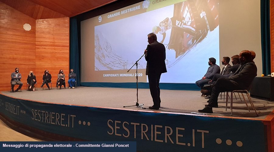 SESTRIERE – Elezioni a Sestriere: la lista Grande Sestriere ha chiuso la campagna elettorale, questa sera, al Cinema Fraiteve. Il pubblico delle grandi occasioni ha partecipato alla serata di chiusura, domani il silenzio elettorale, poi due giorni di voto. Ha aperto l’incontro un video sulle realizzazioni degli ultimi anni e la presentazione dei candidati. Gianni Poncet ha salutato i presenti e descritto quanto fatto negli anni di amministrazione. “Al termine di questa Campagna Elettorale, ringrazio tutti gli elettori che ci hanno seguito nelle varie presentazioni e nei momenti di promozione. Ribadisco che noi alla parole degli altri presentiamo fatti e progetti concreti per il paese e non per interessi particolari. Se parliamo di cifre bisogna ricordare 11 milioni di euro spesi sul territorio“. Poi ad uno a uno sono saliti sul palco, presentandosi, i candidati della lista Grande Sestriere. Ecco Francesco Rustichelli, Emanuela Tedeschi Ruspa, Monica Passet Gros, Giulia Clemente. Poi Maurizio Cantele, Francesco Detta, Thomas Tom Martin, Fabrizio Benintenti, Cesare Quaranta e Thomas Pretato.