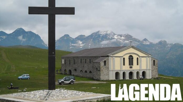 Il Colle del Collombardo, a 1888 metri di altitudine, si trova a cavallo tra la Valsusa e la Valle di Viù e, per la sua posizione strategica, da tempo immemorabile fu attraversato da pastori e mercanti. Nel 1705 fu eretta sul colle una prima cappella. Negli anni venne ampliata fino a raggiungere le dimensioni, davvero impressionanti se si pensa alla quota, del Santuario attuale. Sulla cui facciata si legge: “Gioanni Battista Giorgis dal Forno di Lemie ergeva per voto nel 1704-5. L’indefessa generosità dei parrocchiani di Lajetto ampliando riedificava 1869-70“.