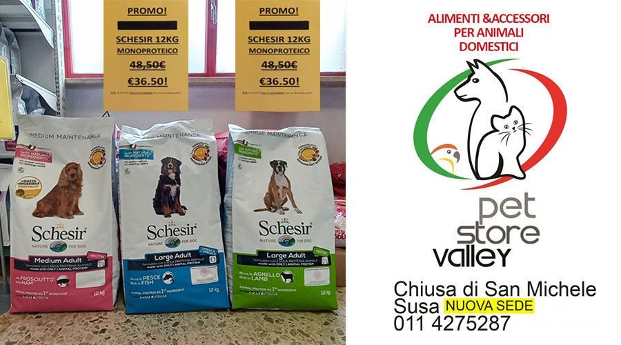 VALSUSA ā Da Pet Store ValleyĀ ĆØ attiva una grande promozione sui sacconi da 12 chili degli alimenti Schesir per cani monoproteico proposti a 36,50 ⬠anzichĆ© 48,50 ⬠fino a esaurimento scorte. Inoltre sui sacchetti Farmina da 1,5 chili per gatto e da 2,5 chili per cane ĆØ attivo uno sconto di 3 ā¬, mentre sui sacchi da 12 chili per cani lo sconto ĆØ di 5 ā¬. Infine da Pet Store Valley unāampia scelta di antiparassitari per cani e gatti scontati tutto lāanno! Affrettati a scoprire le promozioni in corso!