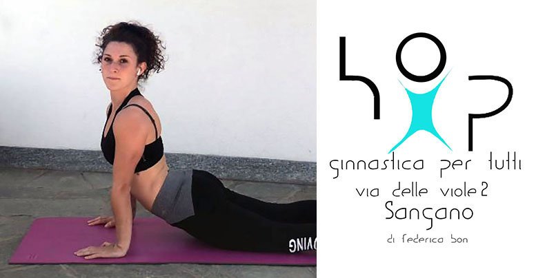 Ripartire dal corpo, ci dice Federica Bon, è l’obiettivo di Hop, il centro di ginnastica di Sangano che prima non c’era! “Fin dalla nascita il movimento caratterizza lo sviluppo dell’essere umano, dapprima per esplorare l’ambiente, in seguito, attraverso lo sport, per definire il carattere della persona. Infine per il mantenimento del benessere psicofisico, nonostante lo stress della vita quotidiana. Hop propone attività basate sull’esecuzione di esercizi personalizzati a corpo libero e con piccoli attrezzi, in grado di sviluppare la muscolatura e ricreare quegli schemi motori di base utili al mantenimento di una buona postura. Ogni sessione di allenamento è strutturata per essere stimolante, divertente ma nello stesso modo fisicamente intensa. Dalla giocomotricità per bambini alla ginnastica funzionale, via le scarpe e usiamo il corpo a partire dai piedi!”