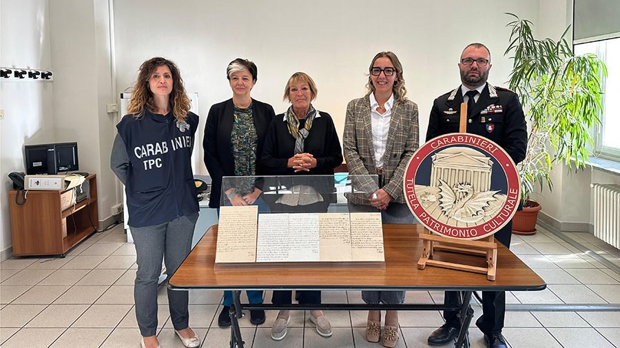 TORINO – Il Comando Carabinieri Tutela Patrimonio Culturale restituisce all’Archivio Storico della Città di Torino alcune lettere autografe del Re Carlo Alberto. Il giorno 6 ottobre 2025, presso la sede dell’Archivio Storico della Città di Torino sono state restituite cinque epistole autografe di Re Carlo Alberto, sottratte in data imprecisata dallo stesso Archivio Storico. Le indagini del Nucleo Carabinieri Tutela Patrimonio Culturale di Torino, coordinate dalla Procura della Repubblica di Torino, sono scaturite dai costanti controlli del mercato antiquario e dalla costante sinergia con la Soprintendenza Archivistica e Bibliografica per il Piemonte e la Valle d’Aosta la quale aveva segnalato la presenza di quattro epistole custodite presso una nota Libreria Antiquaria torinese. La collaborazione del commerciante, che aveva ricevuto le lettere da un privato cittadino per valutarne l’acquisto si è rivelata importante. Infatti si era subito accorto che quelle lettere risultavano di interesse culturale sia per gli argomenti trattati ma, soprattutto, per mittente e destinatario.
