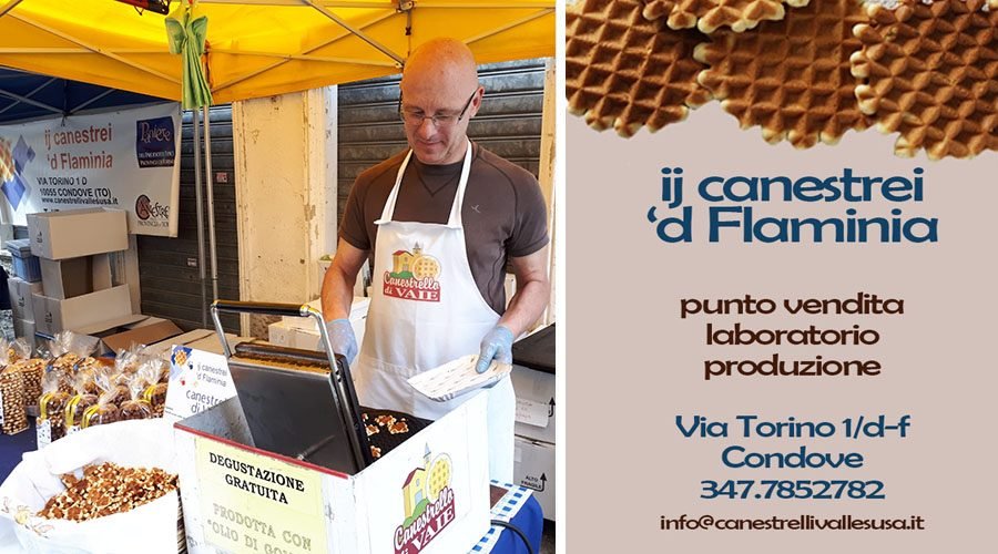CONDOVE – “Ij Canestrei ‘d Flaminia”, il noto biscottificio di Condove, ha un programma di mercatini estivi assolutamente da seguire. A partire dal prossimo weekend, il 26 e il 27 giugno, in cui Katya e Paolo saranno alla Festa del Maggiociondolo a Cesana Torinese. Il loro stand sarà ricco di bontà uniche nel panorama dolciario della cucina piemontese e valsusina. E come sempre sul posto verranno cotti i famosi Canestrelli di Vaie che sprigionano un inconfondibile e buonissimo profumo per le stradine dei bei paesi della montagna della Valsusa e non solo. Una dimostrazione pratica di come l’impasto di questo dolce di origine medioevale da sempre viene cotto nella particolare pinza di ghisa, chiamata gofrere, su fiamma viva.
