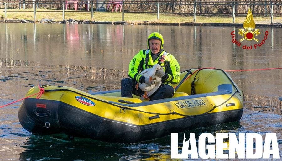 Intervento dei Vigili del Fuoco ieri a Villar Pellice. La squadra dei volontari di Luserna San Giovanni con il nucleo SAF ha recuperato due oche bloccate da 3 giorni su di un’isoletta al centro di un laghetto ghiacciato. Impiegati gommone e mute per avvicinarsi in sicurezza ai volatili che sono stati riconsegnati al proprietario.