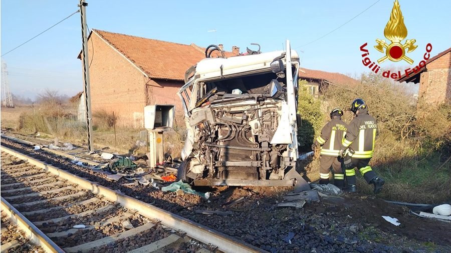 CHIVASSO – Grave incidente ferroviario nel pomeriggio di oggi a Chivasso, in frazione regione Pozzo, dove un treno passeggeri regionale si è scontrato con un mezzo pesante in corrispondenza di un passaggio a livello. Sul posto è immediatamente intervenuta la squadra dei Vigili del Fuoco di Torino, insieme ai nuclei specializzati, per mettere in sicurezza l’area e coordinare i soccorsi. Secondo le prime ricostruzioni, l’impatto è avvenuto mentre il camion si trovava sui binari per cause ancora in fase di accertamento. Fortunatamente, l’autista del mezzo pesante è uscito illeso dall’abitacolo, mentre il personale sanitario del 118 sta effettuando le valutazioni mediche sul posto per monitorare lo stato di salute dei passeggeri a bordo del convoglio.