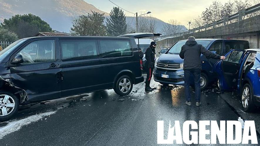 Questa mattina, venerdì 23 dicembre, tre mezzi si sono scontrati a causa del manto stradale difficile. Sul posto sono intervenuti i Carabinieri della vicine Stazione per rilevare le dinamiche del sinistro. Non si registrano feriti e la circolazione è già nella normalità .