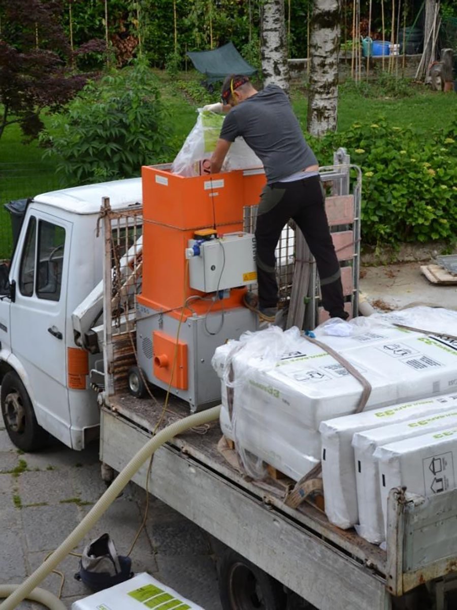 Quando i muri perimetrali dell’edifico sono dotati di intercapedine, cioè uno spazio tra la muratura esterna e interna, è possibile realizzare l’isolamento con fibra di cellulosa. I fiocchi di cellulosa sono insufflati ad alta pressione nella cassa vuota sino a completo riempimento dell’intercapedine, saturando ogni più piccolo spazio. L’intervento dura generalmente un solo giorno e spesso dall’esterno, senza entrare in casa. Si può intervenire in case indipendenti e in condomini, anche in singoli appartamenti o pareti particolarmente fredde, sia per il proprietario dell’appartamento sia solamente per chi è in affitto. E soprattutto, per eseguire l’insufflaggio, non occorre l’autorizzazione degli altri condomini.