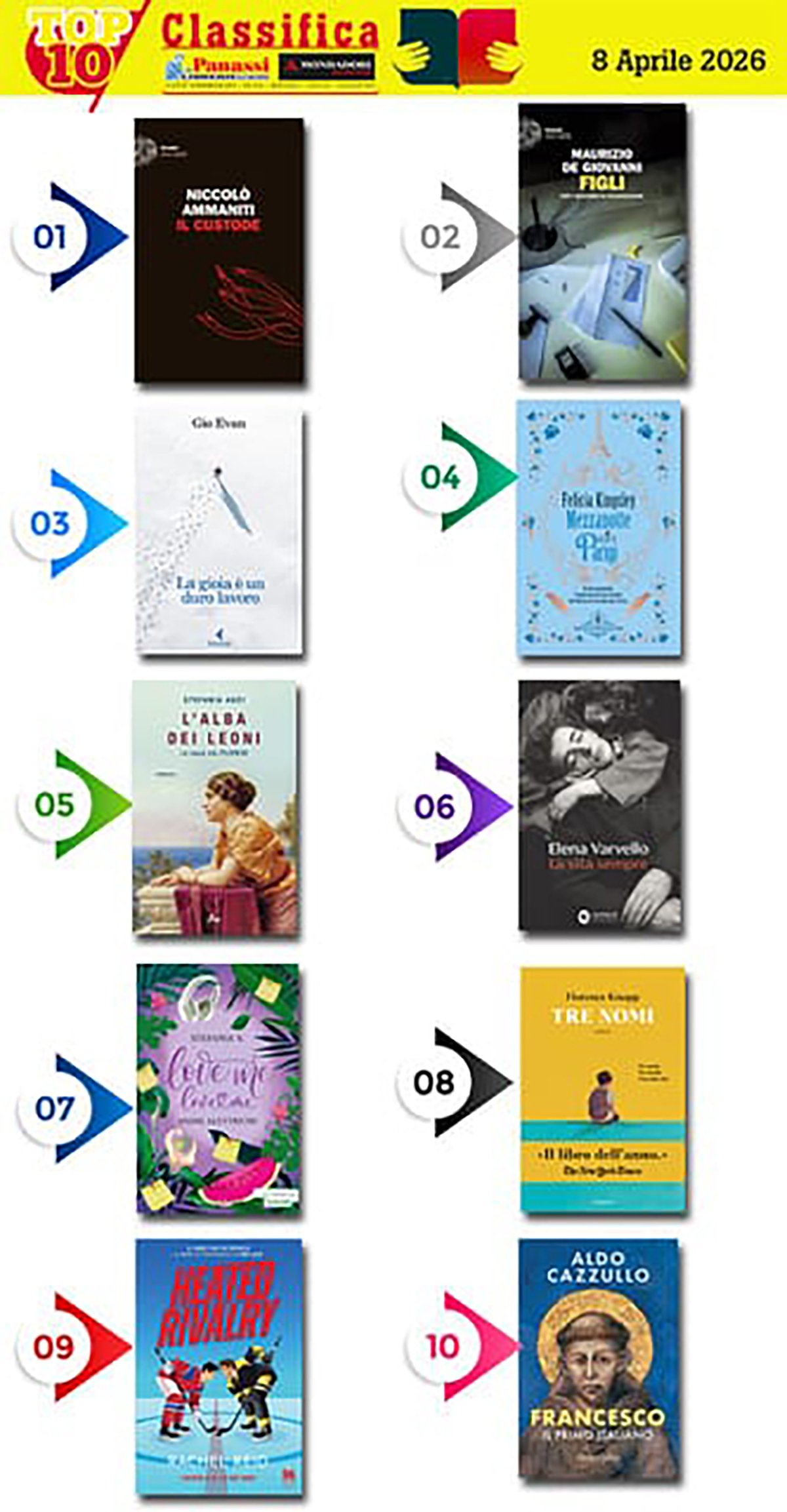 CULTURA – La classifica dei libri della settimana: i consigli delle Librerie Panassi. Il primo in classifica ĆØ il “Il custode” di Niccolò Ammaniti. In uno sperduto borgo della Sicilia, una striscia di case gettate alla rinfusa su una grande spiaggia, vive la famiglia Vasciaveo. Il tredicenne Nilo, la madre Agata e la zia Rosi. Ufficialmente si occupano di lavorare e rivendere marmo, ma ĆØ solo una copertura. I Vasciaveo sono da secoli, anzi da millenni, i custodi di qualcosa di indicibile. Lāarrivo in paese di Arianna ā giovane donna bella e alla deriva ā e della figlia Saskia rompe gli equilibri che tengono in piedi le loro esistenze. Essere custodi della cosa nel bagno equivale anche a esserne prigionieri. Un sacrificio che Nilo, dopo aver conosciuto lāamore, non potrĆ più sopportare.Ā