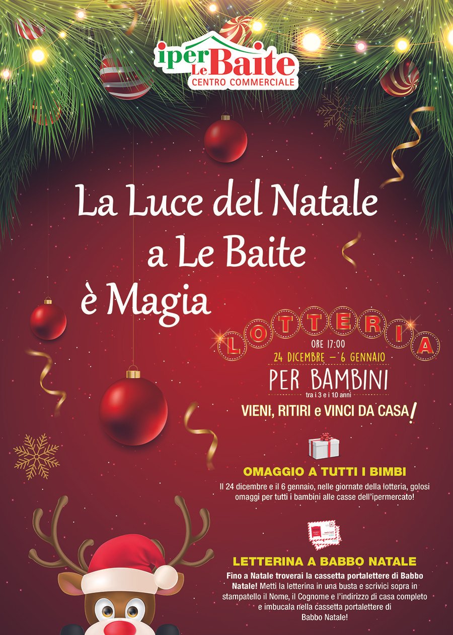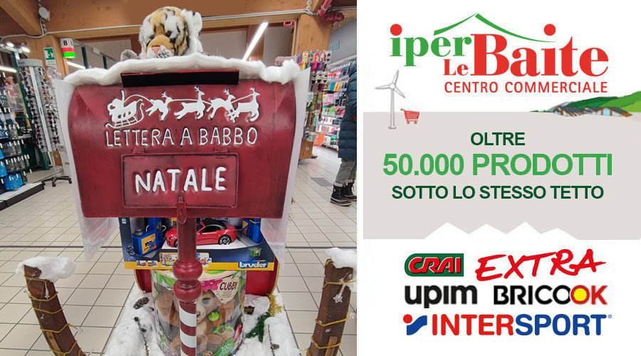 OULX – La luce del Natale all’Iper Le Baite di Oulx è magia! Il centro commerciale è magnificamente addobbato e la cassetta portalettere di Babbo Natale è pronta a raccogliere le letterine dei bambini. I quali, prima di imbucarle, dovranno scrivere sopra il loro nome e indirizzo, sarà poi il team dell’Iper Le Baite a recapitarle direttamente a Babbo Natale! Inoltre il 24 dicembre e il 6 gennaio ci saranno golosi omaggi per tutti i bambini alle casse dell’ipermercato!