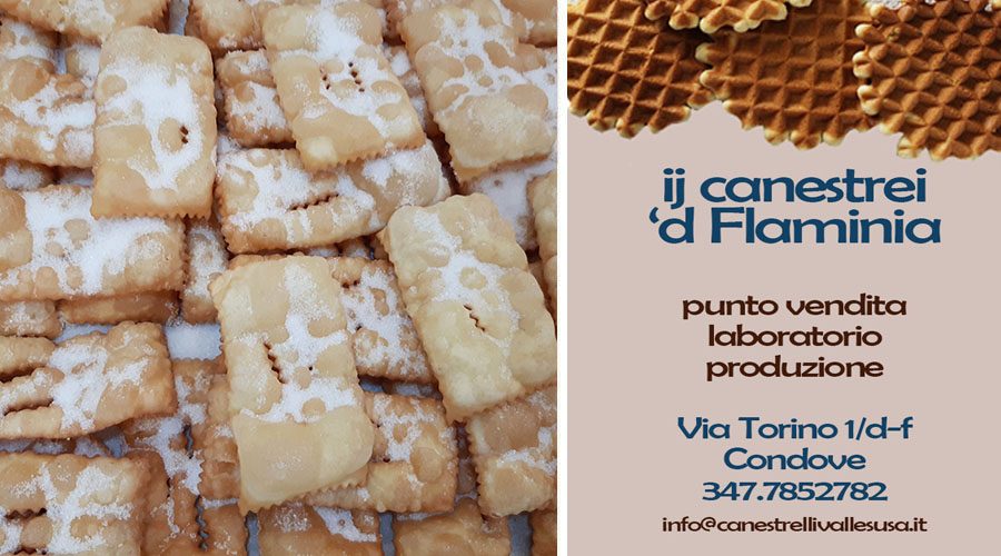 CONDOVE – “Ij Canestrei ‘d Flaminia”, il biscottificio di Condove, sta preparando le bugie vuote e ripiene per Carnevale. Chi le ha già gustate afferma che siano davvero esplosive! Le bugie classiche vuote hanno una spolverata di zucchero sopra. Le bugie ripiene dolci sono farcite con cioccolato, crema, zabaione, marmellata di albicocca e mirtilli, crema di marroni, mentre quelle salate sono farcite con il formaggio del caseificio Valsusa e le erbe dell’azienda agricola La Calcina di Condove. Sono preparate su prenotazione al momento, per garantire sempre una totale freschezza del prodotto. Dopo il successo degli scorsi anni il noto biscottificio valsusino sta sfornando anche le bugie salate. L’impasto è lo stesso di quelle dolci, solo la pasta è un poco più spessa. Ovviamente non sono cosparse di zucchero. Accompagnate a formaggi e salumi sono un’ottima idea per un aperitivo di gusto. Insomma dolci o salate le bugie de “Ij Canestrei ‘d Flaminia” sono davvero imperdibili!