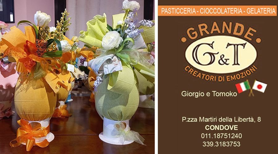Per Pasqua la Pasticceria Grande preparerĆ le torte a tema che andranno ad affiancare le Sacher, ormai conosciute in tutta la Valsusa e non solo. Non mancheranno di certo i pasticcini mignon della Pasticceria Grande che sono in più di trenta varietĆ . Senza dimenticare le curatissime e preziosissime praline di cioccolato in più di quaranta varietĆ e i condovesi al Rhum o alla nocciola. Oltre alla passione, allāabilitĆ e allāesperienza, il segreto dellāarte di Giorgio Grande sono gliĀ ingredienti selezionatiĀ con attenzione e lavorati con esperienza. In negozio ĆØ possibile trovare anche un’ottima scelta di vini. Correte in pasticceria per riservarvi e prenotare il vostro uovo di Pasqua, Giorgio, Tomoko e il loro team sono al lavoro per far sƬ che nessuno rimanga senza!