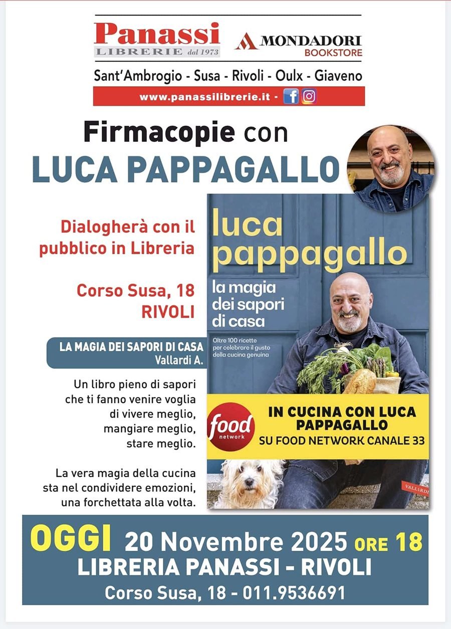 RIVOLI – Alla Libreria Panassi di Rivoli, in Corso Susa 18, oggi giovedƬ 20 novembre alle ore 18 si terrĆ il firmacopie con Luca Pappagallo, che dialogherĆ con il pubblico in libreria. Un’occasione unica per scoprire il suo libro “La magia dei sapori di casa. Oltre 100 ricette per celebrare il gusto della cucina genuina“. Un libro pieno di sapori che ti fanno venire voglia di vivere meglio, mangiare meglio, stare meglio. Grazie al tocco inconfondibile di Casa Pappagallo.