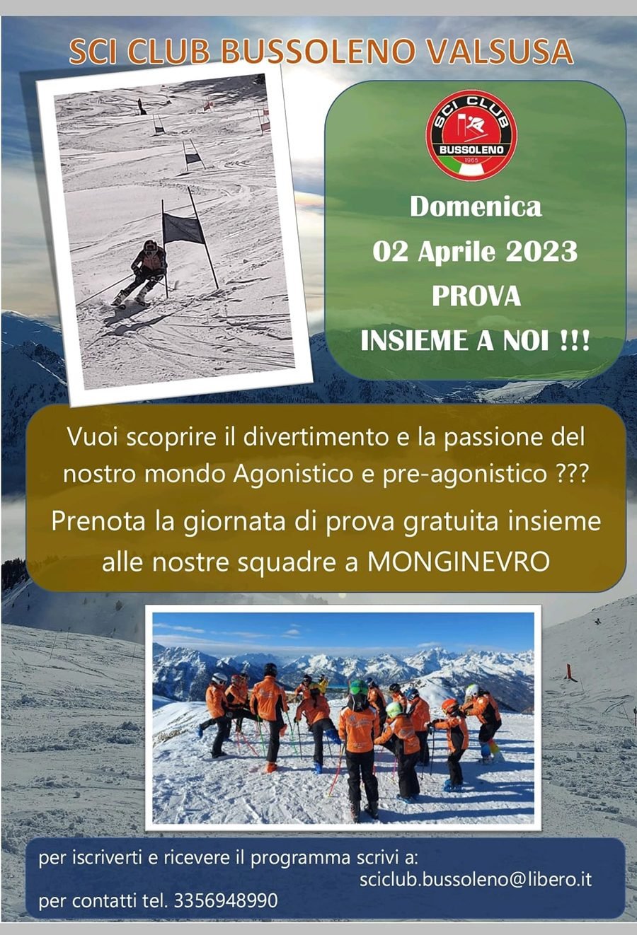 BUSSOLENO ā Vuoi scoprire il divertimento e la passione del mondo agonistico e pre-agonistico dello sci? Prenota la giornata di prova gratuita insieme alle squadre delloĀ Sci Club Bussoleno a Monginevro domenica 2 aprile 2023. Per iscriverti e ricevere il programma invia una e-mail a sciclub.bussoleno@libero.it. Per contatti chiama il numero telefonico 335 6948990.
