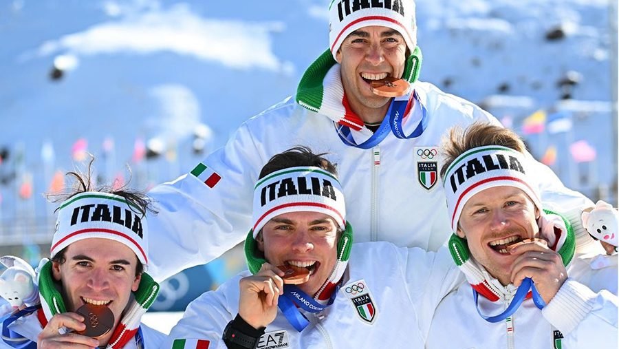 OLIMPIADI MILANO CORTINA – Un leggendario Federico Pellegrino porta la staffetta azzurra alla conquista di uno straordinario bronzo nella staffetta 4×7,5 km di Milano-Cortina 2026! Una gara eccezionale per la squadra italiana composta da Davide Graz, Elia Barp, Martino Carollo e Federico Pellegrino, che a distanza di vent’anni riportano la nostra nazionale sul podio olimpico, dopo l’oro di Torino 2006. Una medaglia sognata da quattro anni dal capitano azzurro, che ha contribuito a crescere il terzetto di giovani che l’ha accompagnato in questa impresa. Una prova di altissimo livello per il quartetto italiano: dopo un grandissima prima frazione di Davide Graz, che ha cambiato al comando insieme alla Norvegia, c’è stata un po’ di sofferenza nelle frazioni centrali, quelle che hanno aperto la gara. Bravo a difendersi alla grande Barp, nonostante qualche difficoltà in salita nel secondo giro, ma alla fine al cambio l’Italia era comunque al terzo posto. Poi un generoso Martino Carollo ha forse commesso un errore tattico, tentando di seguire uno scatenato Desloges, che ha fatto una frazione spettacolare, salvo poi crollare nel secondo giro. Il giovane cuneese azzurro è riuscito comunque a limitare i danni, consegnando il testimone a Pellegrino con una ventina di secondi di ritardo dalla Finlandia.