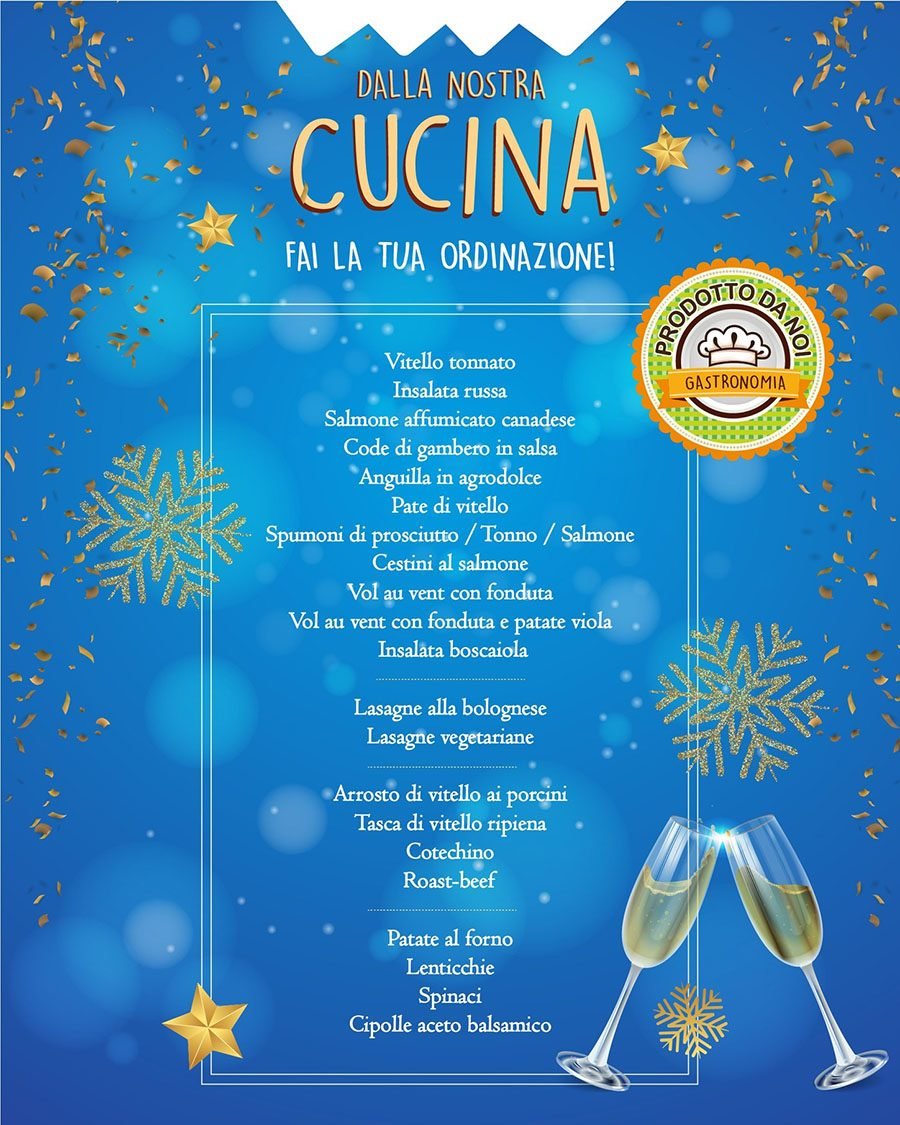 OULX – I cuochi della cucina interna al supermercato Crai Extra nell’Iper Le Baite di Oulx propongono ogni giorno piatti gastronomici buoni, genuini, davvero imperdibili. Un’ampia scelta di piatti, dagli antipasti, ai primi, ai secondi e contorni. Si possono acquistare e ordinare in negozio nel reparto gastronomia, pronti da gustare a casa, in famiglia e fra amici. La qualità e la bontà sono apprezzate da anni, gli ingredienti sono sempre freschissimi. Le ricette sono quelle della tradizione con un occhio attento alla modernità e alla cucina italiana e d’oltralpe. Cosa aspettate? Affrettatevi, prenotare è semplicissimo, in negozio il team vi aspetta per le ordinazioni di Capodanno!