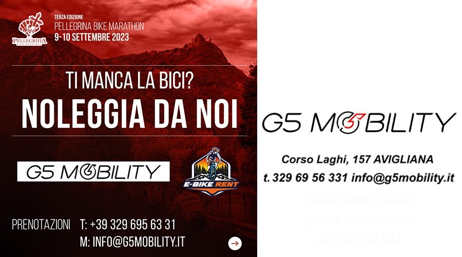 AVIGLIANA – Il week end del 9-10 settembre avrà luogo la Pellegrina Bike Marathon. G5Mobility, l’azienda di e-bike di Avigliana, sarà partner dell’evento! Sarà presente con uno stand alla partenza e disponibile per il noleggio di e-bike, in collaborazione con e-bike Rent di Collegno. È un’occasione unica, non mancare!