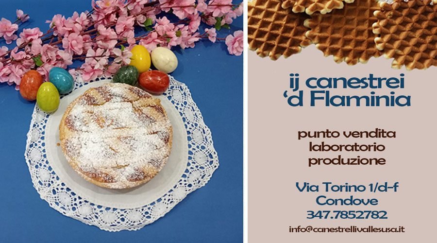 CONDOVE – Per Pasqua il biscottificio “Ij Canestrei ‘d Flaminia” di Condove ha una grande novità: la pastiera valsusina! Viste le numerose richieste degli scorsi anni da parte dei clienti, Katya e Paolo hanno deciso di prendere la ricetta della pastiera napoletana, rivisitarla e, dopo alcune prove e molti assaggi, ecco che hanno sfornato la loro pastiera artigianale. Da subito un grande successo! Non tipicamente piemontese, la pastiera è un dolce pasquale partenopeo talmente buono che non può mancare in tavola. Se desideri assaggiare la pastiera de “Ij Canestrei ‘d Flaminia” prenotala subito in bottega o telefonicamente al numero 347 7852782. E se desideri festeggiare i giorni pasquali in famiglia o con gli amici, i prodotti tipici e le bontà artigianali del biscottificio di Condove sono da sempre una garanzia. Nella bottega annessa al laboratorio di produzione inoltre sono arrivate le colombe di Giacomo Bianciotto, gli ovetti di cioccolato e i liquori della valle. Si uniscono ai tanti prodotti che Katya e Paolo in questi anni hanno accuratamente selezionato da produttori locali e del Piemonte e che si aggiungono a quelli che escono dal loro laboratorio. Se poi desideri fare un regalo è possibile scegliere ciò che andrà a comporre eleganti e sicuramente graditi cesti. Fai un salto nella bottega di Condove, l’ingresso e libero!