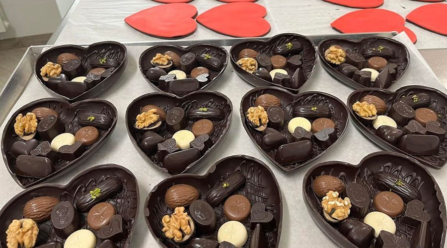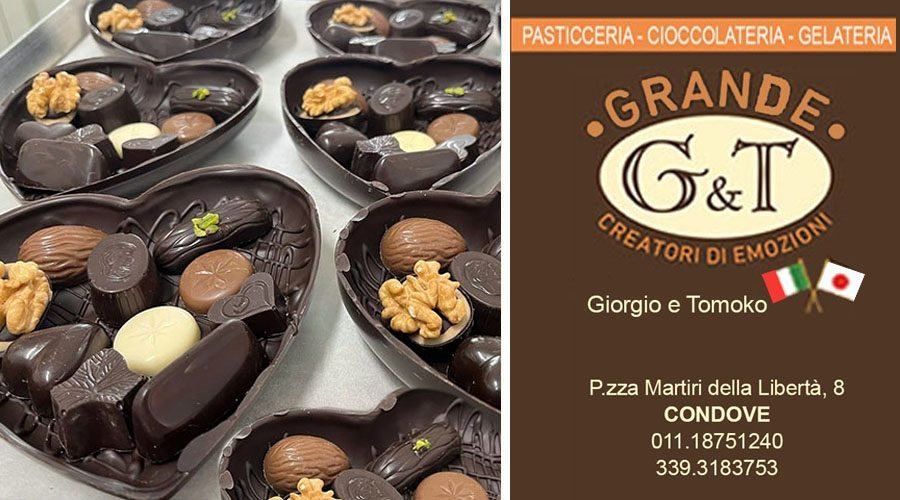 CONDOVE ā San Valentino si avvicina e il maestro pasticcere Giorgio Grande in questi giorni ĆØ al lavoro per preparare tantissime torte Sacher vestite a festa e decorate con un bel cuore rosso, un regalo speciale per la persona amata. Ma non solo, infatti sono in produzione anche le torte Pan di Spagna o pasta sfoglia crema, cioccolato, nocciola e panna con decorazione di fragole e lamponi. Alla Pasticceria Grande di Condove il cioccolato ĆØ sempre protagonista e per la Festa degli Innamorati trionfa nelle praline raccolte in un finissimo cuore di cioccolato fondente. Una delizia per gli occhi e il palato! Le curatissime e preziosissime praline di cioccolato sono in più di quaranta varietĆ . Con il ripieno di differenti creme o frutta candita, sono dei veri gioielli di alta pasticceria. Inoltre in questi giorni Giorgio ha preparato anche gli imperdibili Condovesi al Rhum o alla nocciola incartati a mano a uno a uno. Ć sempre consigliata la prenotazione al numero telefonico 011 18751240.