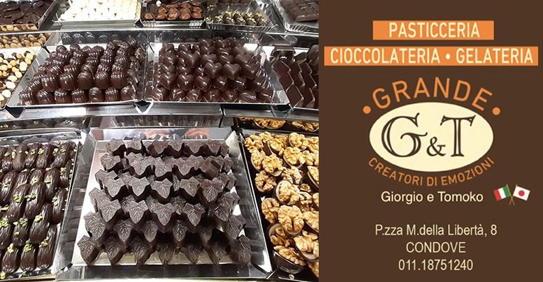 I pasticcini mignon della Pasticceria Grande di Condove sono in più di trenta varietà . Curatissimi alla vista sono squisiti al palato per gli ingredienti di qualità  scelti con estrema attenzione. La pasticceria di Condove è anche specializzata nella creazione di torte per ogni occasione. Oltre alle Sacher, le torte di nocciole; meringata cioccolato, crema e panna; mousse alla fragola e ai frutti di bosco; torta pan di Spagna cioccolato e panna; torta pan di Spagna nocciola e panna; torta pan di Spagna crema e cioccolato; torta pan di Spagna nocciola e cioccolato. à sufficiente ordinarle con qualche giorno di anticipo. Giorgio è in grado di preparare la torta con gli ingredienti richiesti e la moglie Tomoko può abbellirla con una decorazione personalizzata con cioccolato fondente, pasta di mandorla e pasta di zucchero. E per un aperitivo sfizioso i salatini in più gusti e su ordinazione.