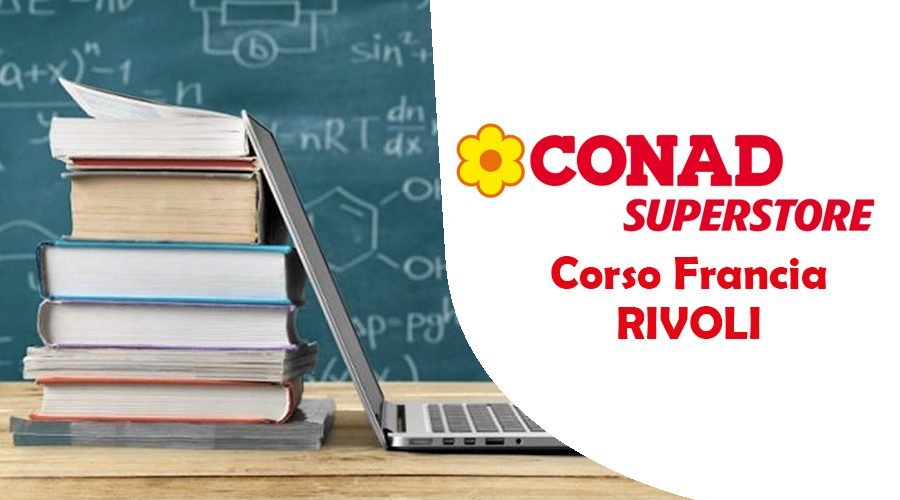 RIVOLI – L’impegno di Conad per la scuola! Prenota i libri scolastici al Conad Superstore di Corso Francia a Rivoli entro il 30 settembre: avrai uno sconto immediato del 15%! E se lo desideri, a pagamento, è disponibile il servizio di copertinatura: richiedila mentre ordini e ritira i libri già copertinati!