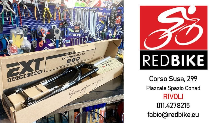 RIVOLI – Red Bike, il negozio di bici di Rivoli, è Official Center e Test Point Extreme Racing Shox, sospensioni di alta gamma. “Lavoriamo con Extreme Racing Shox da tanti anni – ci dice Fabio Fina, titolare di Red Bike – sia come negozio, sia come squadra corse partecipando anche con Vittorio Gambirasio ai test sviluppo di alcuni loro prodotti. Insieme abbiamo raggiunto importanti traguardi. Adesso ci saranno importanti novità. Grazie Extreme Racing Shox e RXT Services – Trading Company per averci scelto”. Red Bike è dunque il centro di riferimento per Torino, la cintura e le valli Susa e Sangone per l’assistenza, la vendita, i test e i consigli per tarature personalizzate delle sospensioni Extreme Racing Shox.