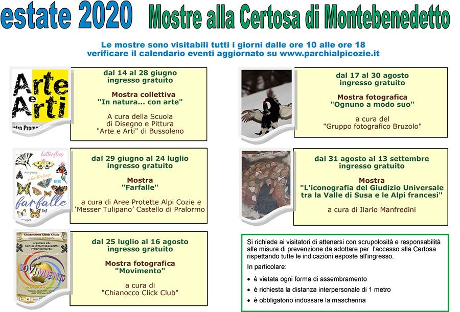 VILLAR FOCCHIARDO – Riaperta alle visite la Certosa di Montebenedetto di Villar Focchiardo. Riapre alle visite la Certosa di Montebenedetto che per tutta l’estate ospiterĆ mostre di disegno, fotografia, natura e cultura. Da domenica 14 ospiterĆ la mostra collettiva “In natura… con arte“, a cura della Scuola di Disegno e Pittura “Arte e Arti” di Bussoleno.