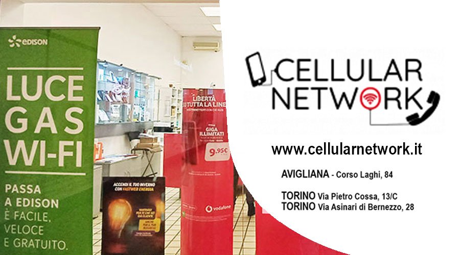 Cellular Network Avigliana – Corso Laghi, 84. Avigliana (Centro Commerciale Le Torri) – Telefono e Whatsapp 011 9311280 – E-mail: cellularnetwork.avigliana@gmail.com