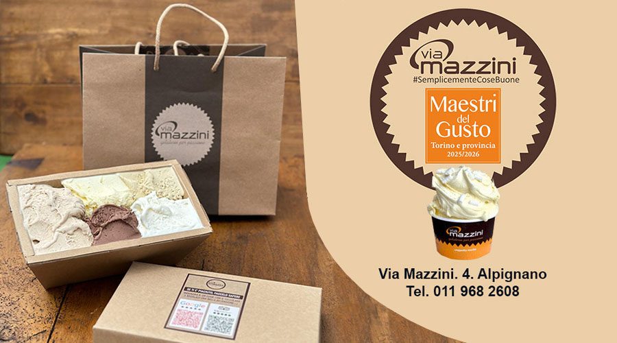 La Gelateria Via Mazzini di Alpignano da ben 25 anni è un vero e proprio punto di riferimento: il gelato viene mantecato fresco, utilizzando solo materie prime di altissima qualità. Il latte è biologico, sano, buono e digeribile, la miglior panna del territorio è un’eccellenza tra le materie prime utilizzate. Le uova sono bio da galline allevate all’aperto. Il gelato alla frutta viene realizzato senza latte e con frutta fresca di stagione. Infine la gelateria utilizza le migliori eccellenze: la nocciola Piemontese, il pistacchio Siciliano, il cioccolato di Modica, il limone di Sorrento, la vaniglia Indonesiana, il cocco Thailandese, mango e maracuja del Sud America. La Gelateria “Via Mazzini” è anche pasticceria e caffetteria. Realizza torte e semifreddi artigianali. Le torte personalizzate trasformano i momenti in occasioni speciali. È possibile scegliere tra torte classiche, torte moderne, cream tart, lambeth cake, semifreddi, mousse, torte gelato, meringate e torte di frolla. Ci sono anche le torte senza glutine e senza lattosio. Nella caffetteria “Via Mazzini” qualità, sostenibilità ed eccellenza sono al centro del progetto, il caffè esclusivo ed unico.