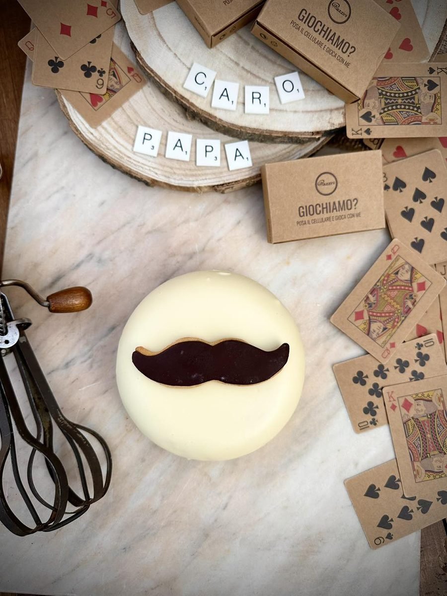 - MOUSTACHE: mousse alla nocciola, croccante alla nocciola, pan di spagna, copertura morbida al cioccolato bianco.