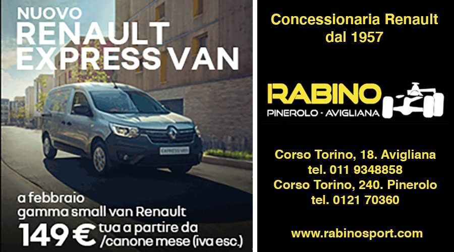 AVIGLIANAĀ āĀ La Concessionaria Rabino di Avigliana e Pinerolo presenta Nuovo Renault Express Van, pratico e funzionale. Può essere tuo da 149 ā¬/ canone mese Iva esclusa in caso di permuta o rottamazione e leasing Renault. Anticipo 4.323,34 ⬠– TAN 3,99% – TAEG 7,05%. 47 canoni, valore di riscatto 4.105,54 ā¬. Tutti i dettagli al link. Il team della Concessionaria Rabino ĆØ a disposizione per informazioni e preventivi dettagliati.