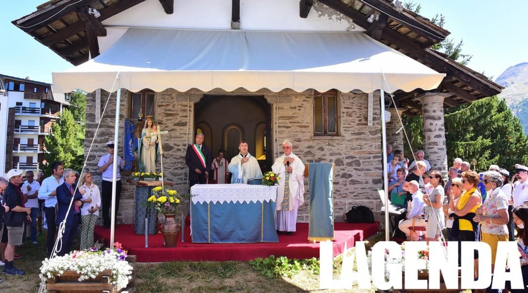 Come tradizione la comunità del Colle del Sestriere ha celebrato la Festa alla Cappella Regina Pacis con la processione accompagnata dalle note del Gruppo Musicale di Villar Perosa. È stata l’occasione per la prima visita al Sestriere del nuovo Vescovo di Torino e Susa, Roberto Repole, accolto dal Sindaco di Sestriere, Gianni Poncet, dal vicesindaco Francesco Rustichelli e dalla consigliera comunale Emanuela Ruspa Tedeschi. Il Vescovo ha poi celebrato, assistito da don Giorgio Nervo, la Santa Messa, nella cappella Regina Pacis, eretta sulla collinetta che domina il Colle ed inaugurata nel 1924. Ad accompagnare la celebrazione religiosa sono stati i canti della Corale della Parrocchia Sant’Edoardo di Sestriere.