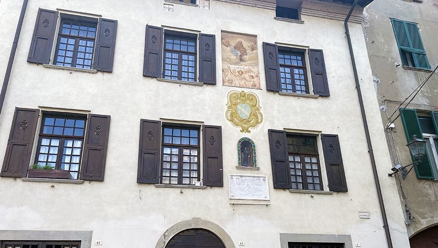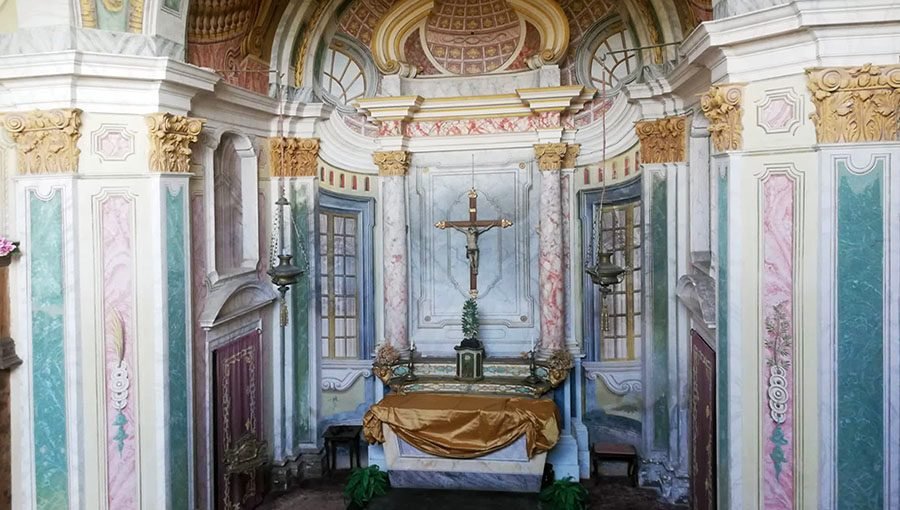 Al Castello di Rocca Grimalda un cortese padrone di casa ci accoglie nello splendido belvedere sulla valle dell’Orba e su altri castelli, nel curato giardino all’italiana, attiguo all’”hortus conclusus” e al pergolato di frutta del giardino segreto. Ci racconta che la numerosa famiglia di antiche origini liguri e piemontesi ha restaurato il giardino e l’edificio con il torrione, rendendolo una confortevole residenza per i proprietari e i loro ospiti e ci mostra l’affascinante cantina di prossimo restauro. C’è anche un delizioso B&B e appartamenti di charme per clienti più esigenti. Ma ci rapisce veramente la cappella privata, commissionata da Giovanni Battista Grimaldi III alla fine del’700, magistralmente decorata a trompe l’oeil con l’aggiunta di stucchi policromi.