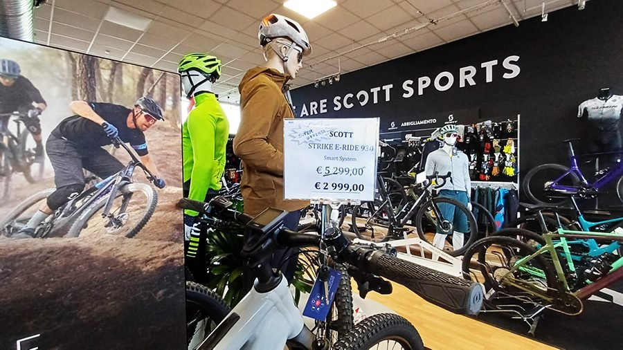 Da Cicli Sumin ampia è la scelta di bici, abbigliamento e accessori. Non mancano le promozioni. Cicli Sumin commercializza le migliori marche di mountain bike, biciclette da strada ed e-bike. In particolare è concessionario ufficiale per la Valsusa del marchio americano Scott. Sono presenti nello showroom anche altri noti marchi di biciclette, quali Merida, Atala/Whistle, Guerciotti e Torpado. Cicli Sumin ha inoltre un’attrezzata officina interna con una postazione di lavoro specifica per la cura delle e-bikes. I meccanici forniscono un servizio di riparazione, manutenzione e messa in strada di ogni tipo di bici. Per le riparazioni e i tagliandi delle due ruote è sempre consigliata la prenotazione al numero telefonico 011 939162. In negozio sono attivi i sistemi di pagamento Satispay e PagoDIL. Quest’ultimo è un metodo di pagamento innovativo che dà la possibilità di dilazionare l’importo dell’acquisto in rate mensili senza alcun costo aggiuntivo, con zero interessi, senza che venga richiesta alcuna busta paga e con la massima velocità. Possibilità di finanziamenti.