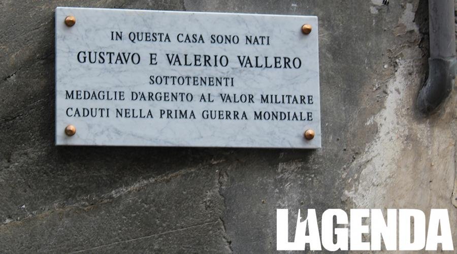 Il primogenito entrò in magistratura, come il padre, e durante la Grande Guerra fu arruolato come ufficiale di complemento. Il fratello Valerio invece intraprese la carriera militare e nel 1914 con il grado di sottotenente degli alpini fu assegnato al battaglione Susa. Poche settimane dopo l’inizio della guerra il battaglione Susa, assieme al battaglione Exilles fu destinato alla conquista del Monte Nero e in quella circostanza perse la vita Valerio Vallero, che fu decorato con una medaglia d’argento, dopo che ne aveva già ricevuta una la settimana precedente per un rischiosa e vittoriosa azione. Il fratello maggiore Gustavo, in servizio in un reggimento di milizia territoriale, perse invece la vita poco più di un anno dopo, sul Carso, dopo la conquista di Gorizia da parte italiana. Anche lui ebbe il riconoscimento di una medaglia d’argento per il suo valoroso comportamento. Le medaglie, per chi non avesse mai viste e volesse vederle sono a Palazzo Buttis, in Municipio, nella sala del sindaco.