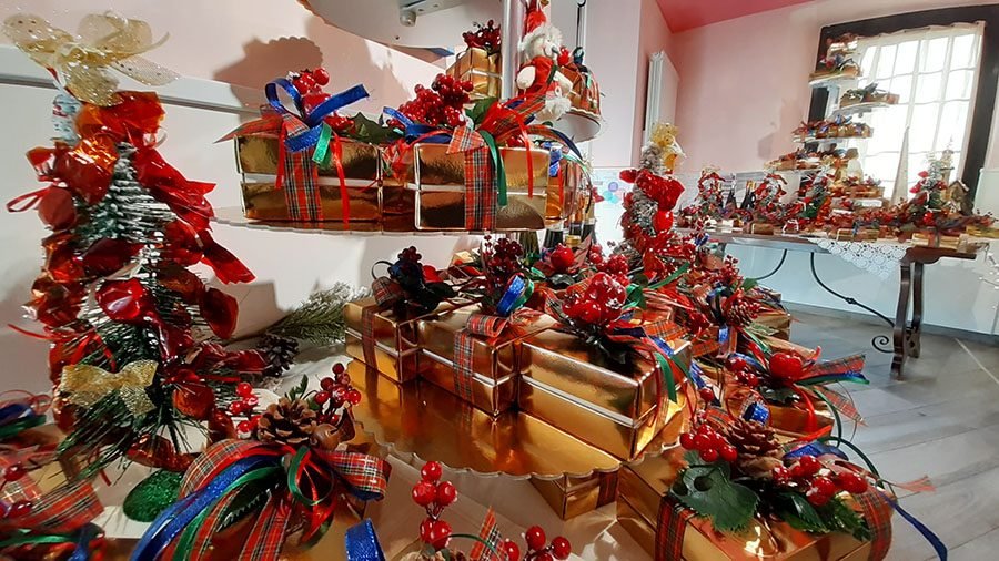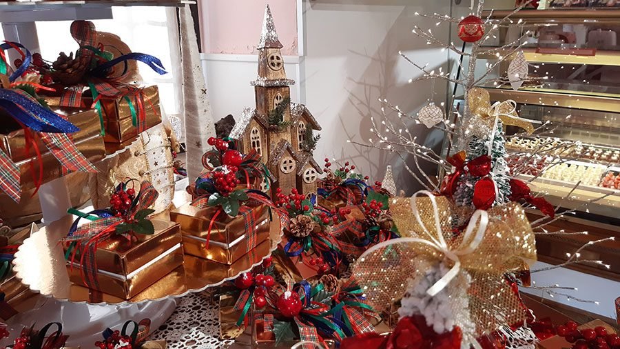CONDOVE – Sono tantissime le bontà per Natale della Pasticceria Grande di Condove, sia per i pranzi e le cene delle feste, sia per un dolce regalo. È sempre un’emozione entrare nella pasticceria di Giorgio e Tomoko: un trionfo di praline, confezioni natalizie eleganti e di buon gusto. Le scatole regalo avvolte da nastri colorati e dorati, fra rami di pino e bacche racchiudono le famose praline al cioccolato. In più di quaranta varietà, con il ripieno di differenti creme o frutta candita, sono dei veri gioielli di alta pasticceria. Le eleganti scatole sono di diverse dimensioni e rappresentano un’ottima idea per un pensiero o per un presente natalizio importante, ma soprattutto di eccellenza.