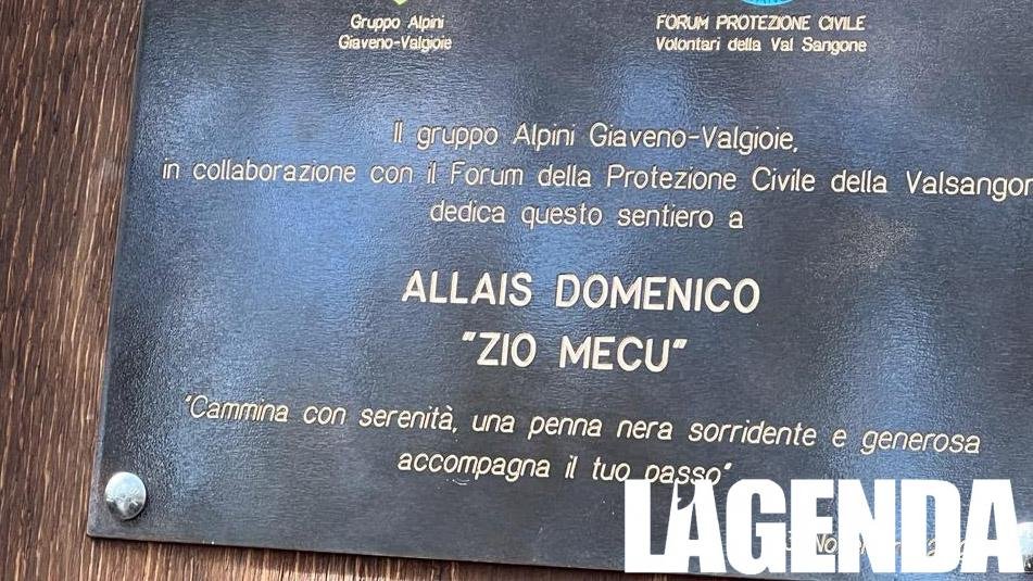 In una calda domenica di novembre ĆØ stato inaugurato il sentiero dedicato a “Zio Mecu” Domenico Allais. A ricordo di una presenza importante nel tessuto associativo il sentiero ĆØ stato prima risistemato poi intitolato alla memoria di Allais da Borgata Tonda all’Armorolo. A Gianfranco Giaj Arcota la dedica ĆØ andata al sentiero che porta alla Cappella del Monte Aquila. Protagonisti i soci del gruppo ANA di Giaveno-Valgioie e il Forum della Protezione Civile della Valsangone. Tante le autoritĆ che hanno voluto sottolineare questo importante avvenimento che segna un percorso del territorio ad un figura tanto amato e adesso rimpianta. Presente il sindaco di Valgoie Claudio Grosso, il vice di Giaveno Stefano Olocco, l’onorevole Daniela Ruffino e il consigliere regionale Paolo Ruzzola. A scoprire la targa ĆØ stato il capo gruppo alpini Stefano Tizzani con le figure più care di Allais e Giaj Arcota.